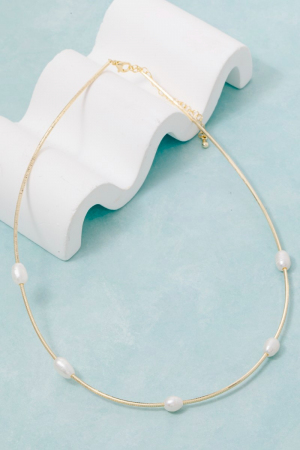 Pearl Bead Twisted Wire Choker Necklace