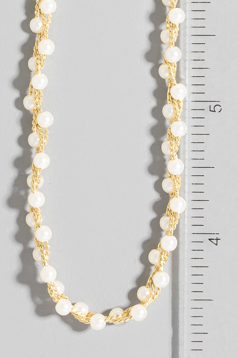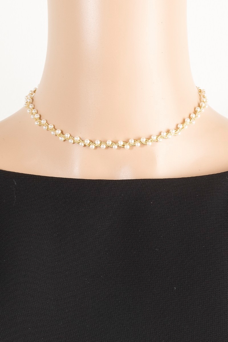 - This necklace showcases a timeless intricate woven pearl beaded style. Immerse yourself in the world of understated glamour as this necklace effortlessly exudes timeless appeal.