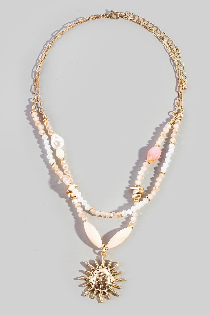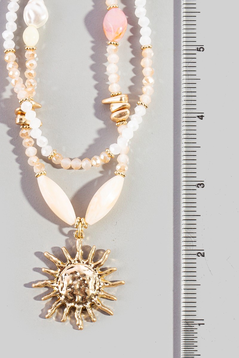 - This pendant necklace brings a luxurious layered crystal & pearl beaded sunburst style. Delight in the intricate details that make this pendant necklace an essential element in expressing your fashion identity.