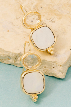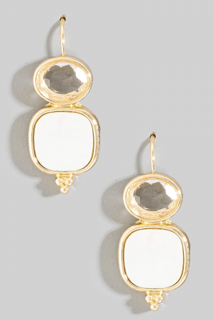 - This pair of drop earrings showcases a unique mother of pearl square style. Elevate your ensemble with this chic, timeless pair of drop earrings.