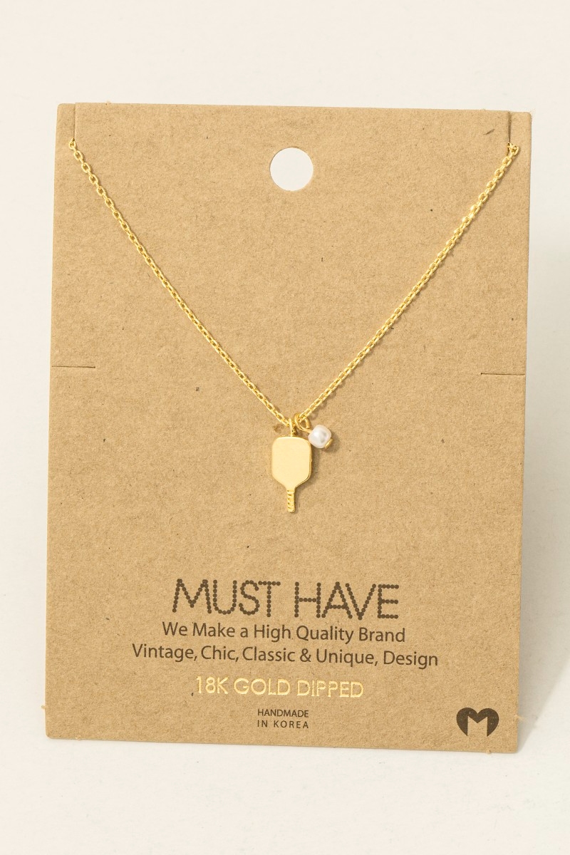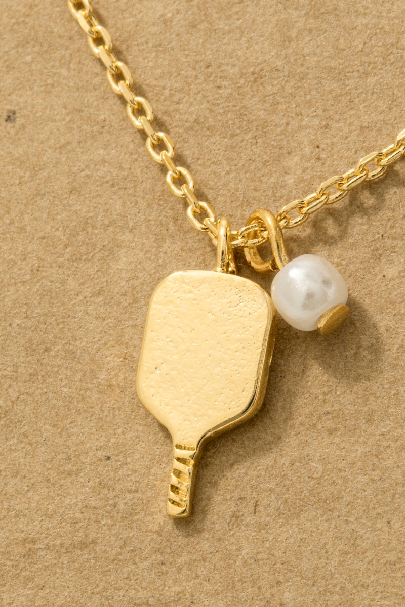 • This trending necklace introduces a stunning gold dipped pearl pickle ball pendant necklace style. Celebrate the art of accessorizing with this piece that effortlessly encapsulates modern trends.
