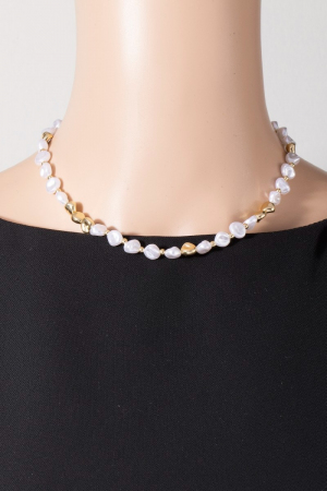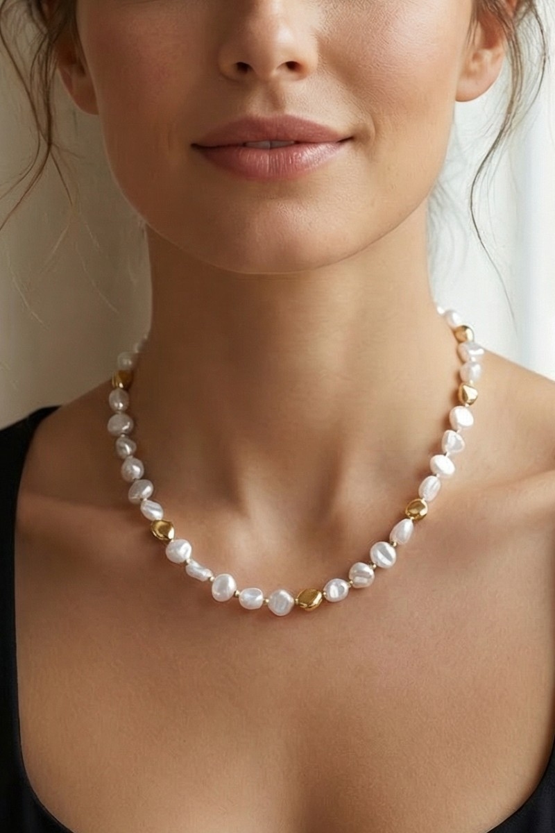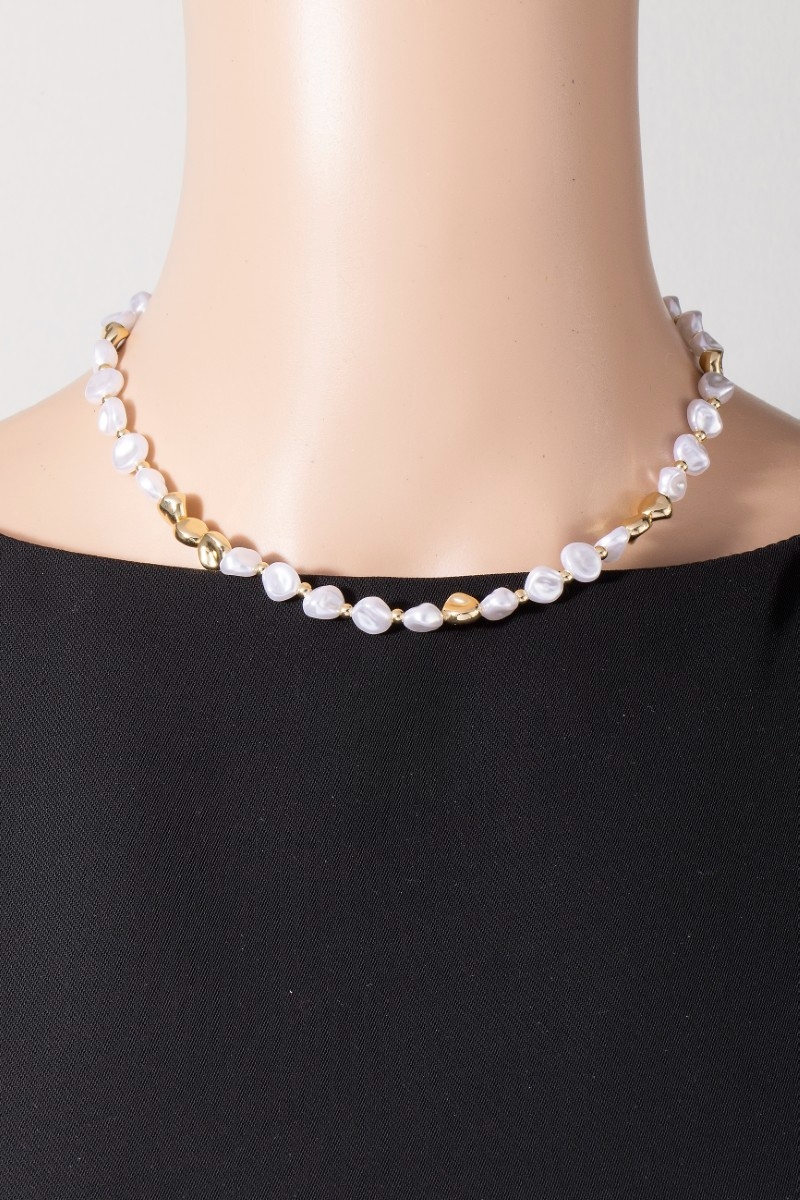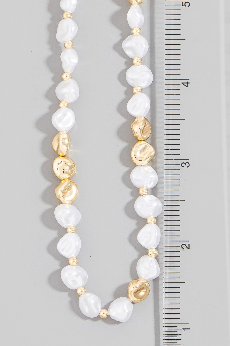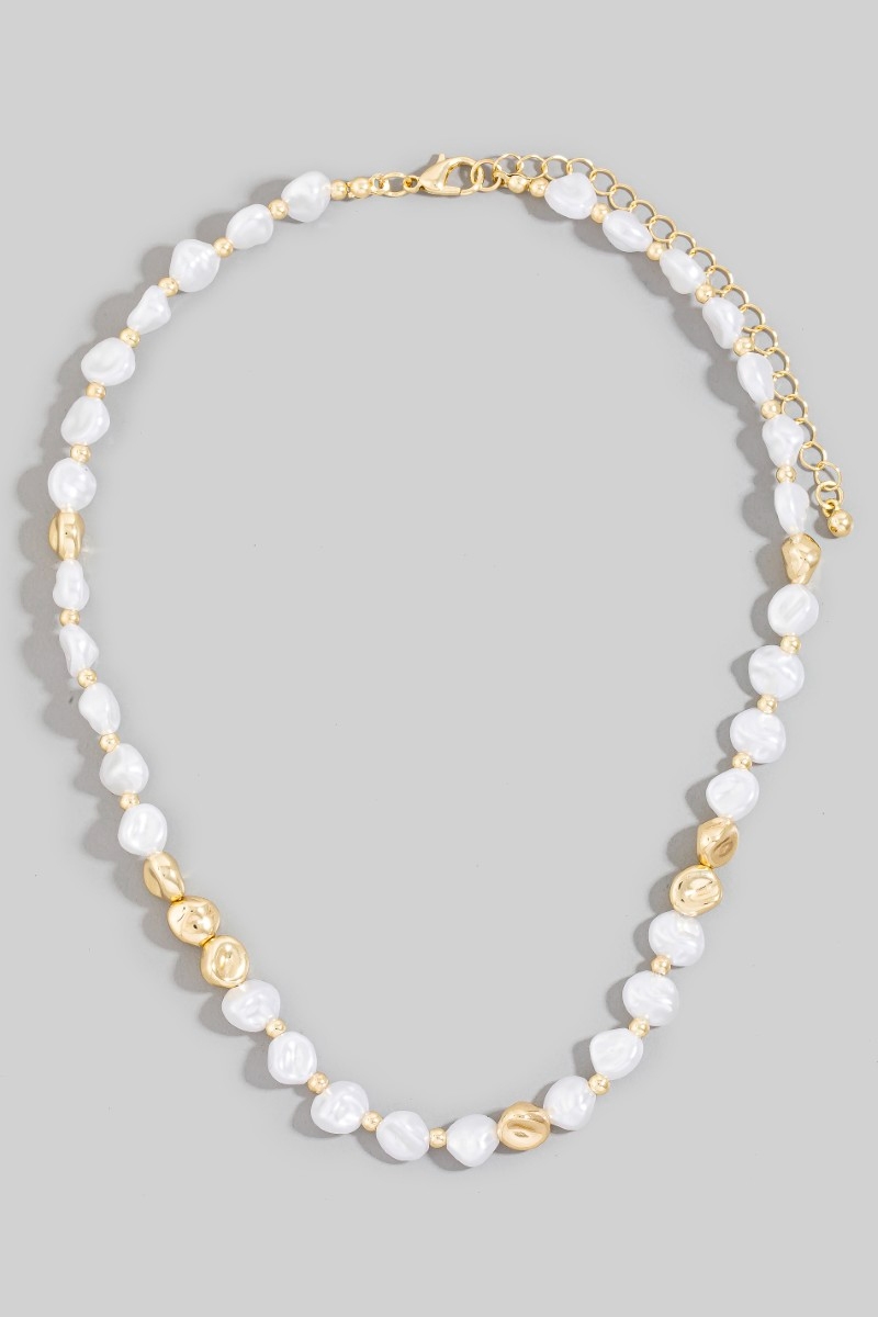 - This necklace adds a modern irregular pearl and metallic beaded style. Elevate your ensemble with this chic, timeless necklace.