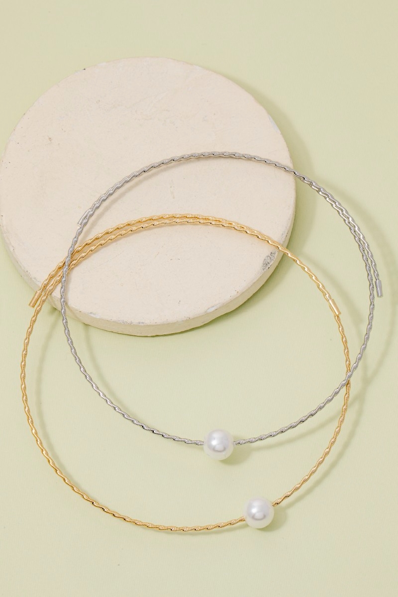 • This necklace brings a stunning metallic torque collar pearl bead style. Experience a burst of creativity in accessorizing as this piece effortlessly sets the tone for your unique style.