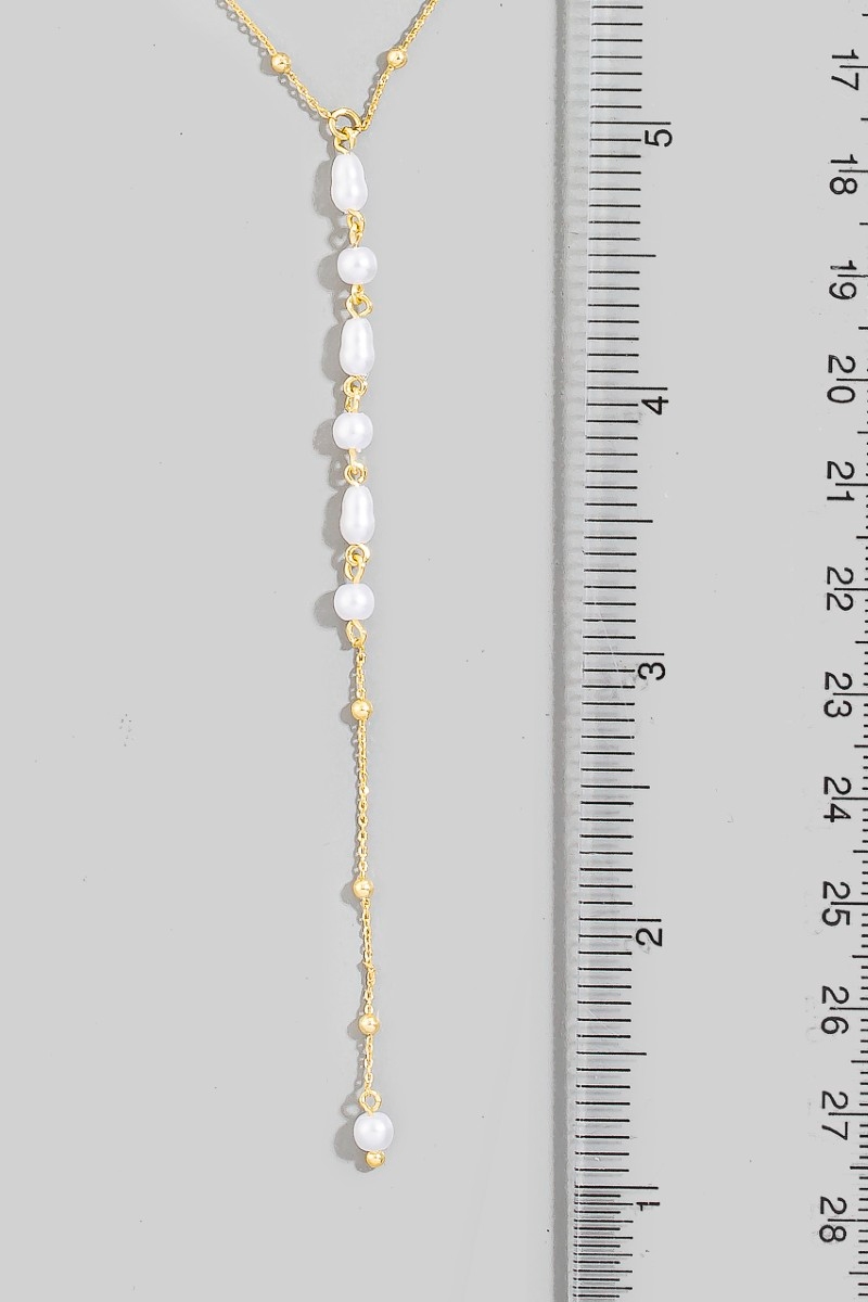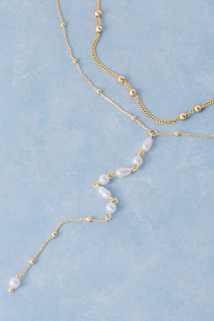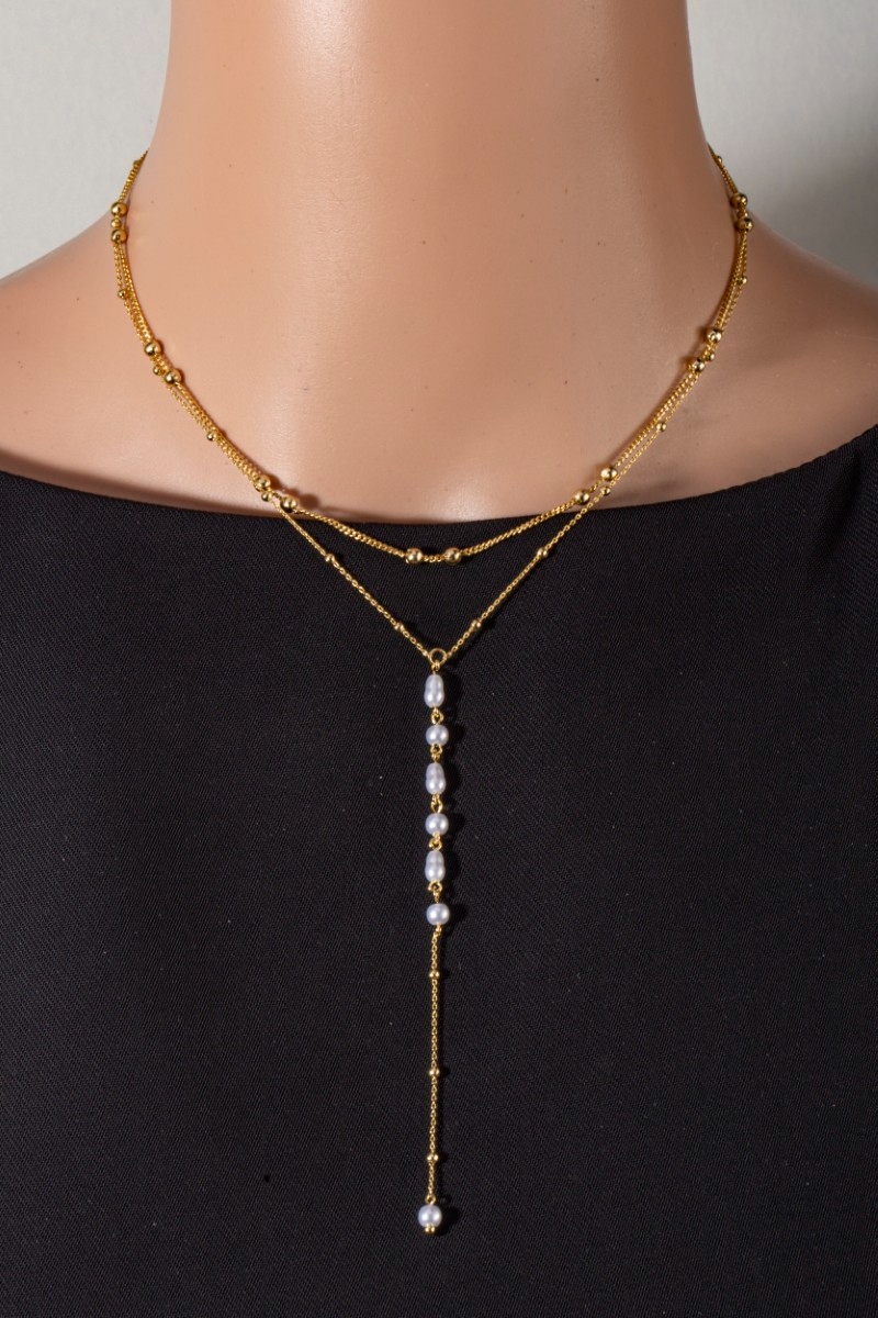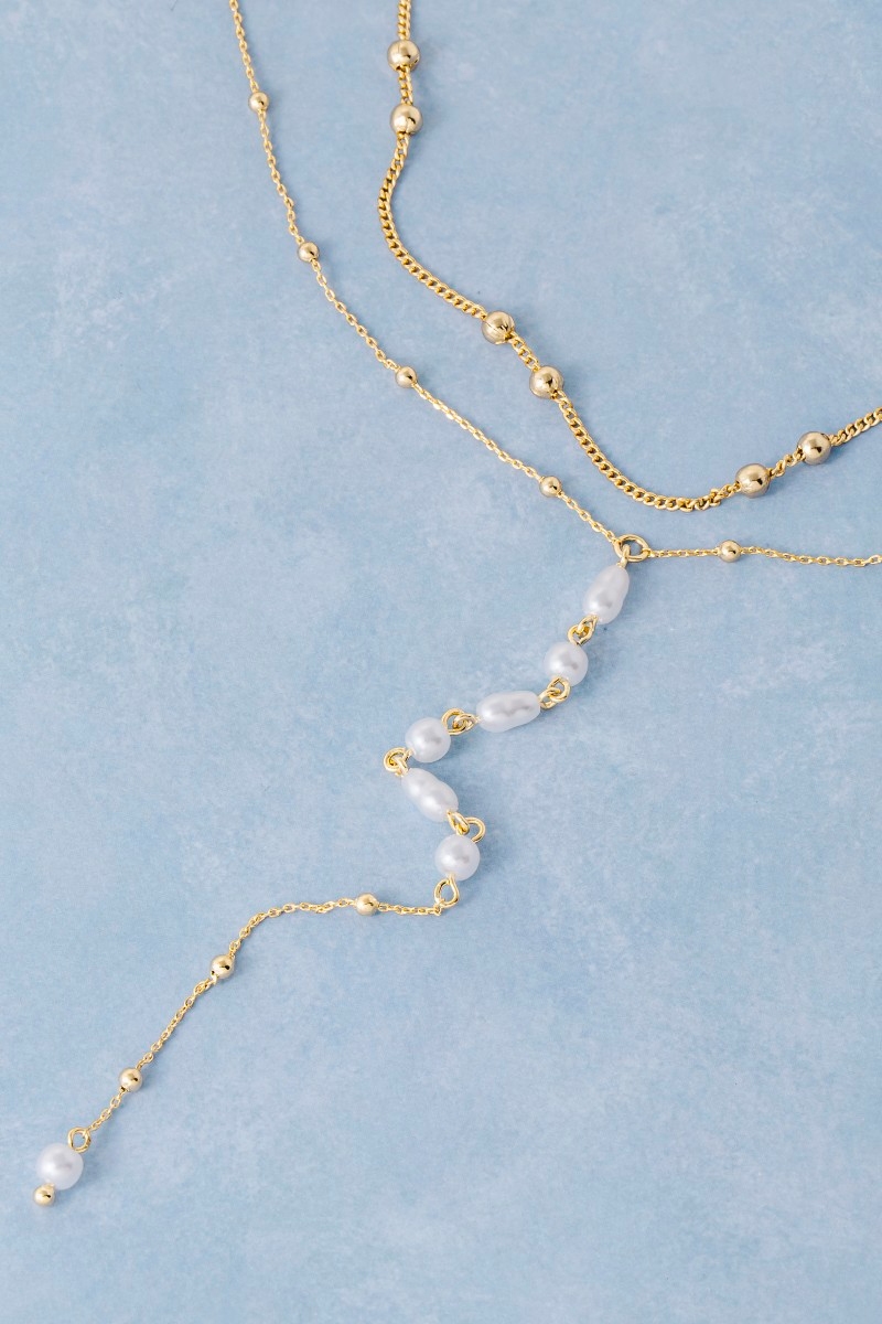 - This chain necklace introduces a unique mini pearls layered y style. Discover the perfect balance of subtlety and flair as this chain necklace effortlessly completes your look.