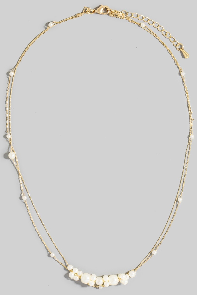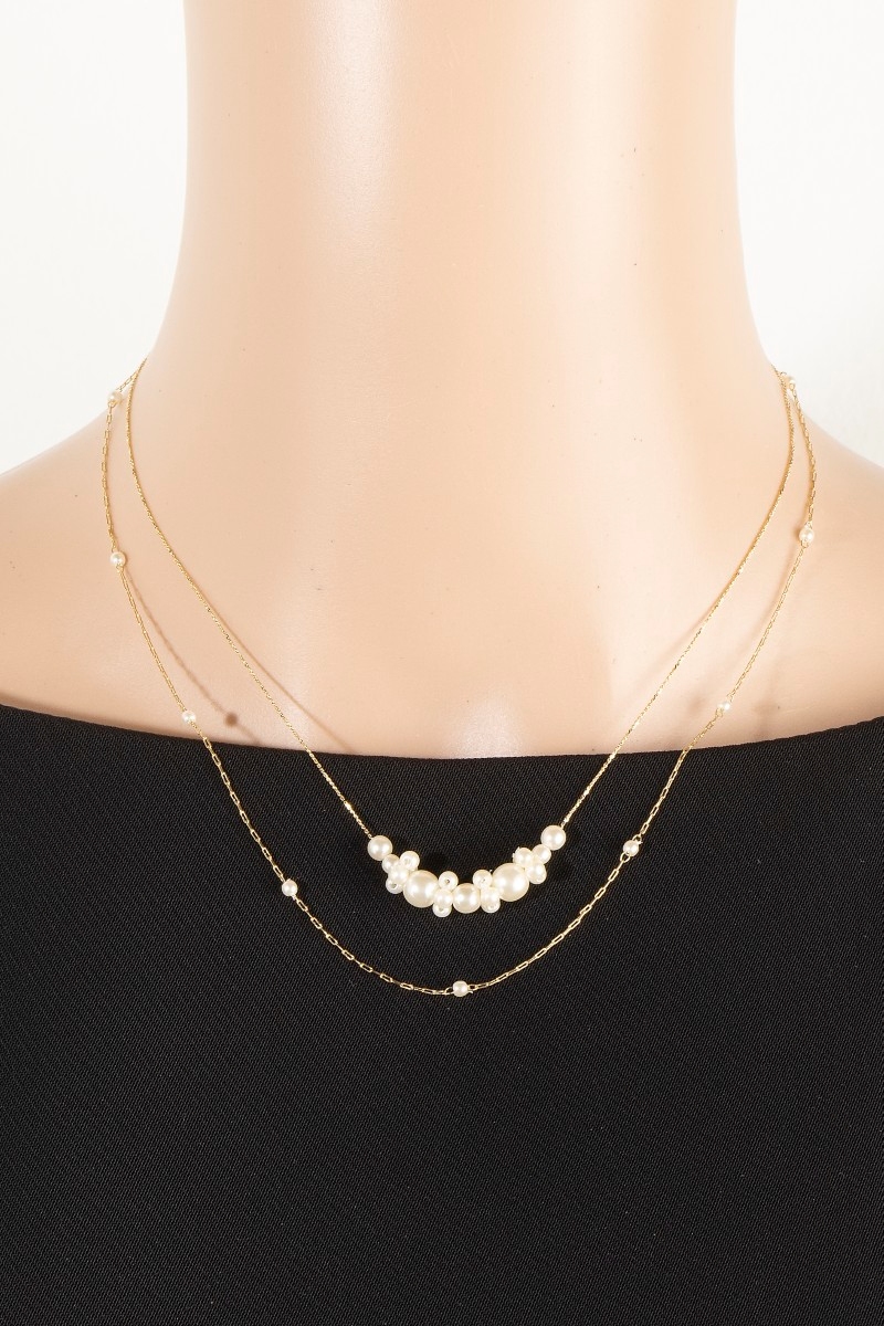 - This necklace showcases a timeless pearl bead clusters layered dainty chains style. Celebrate individuality with this necklace that effortlessly expresses your unique sense of style.