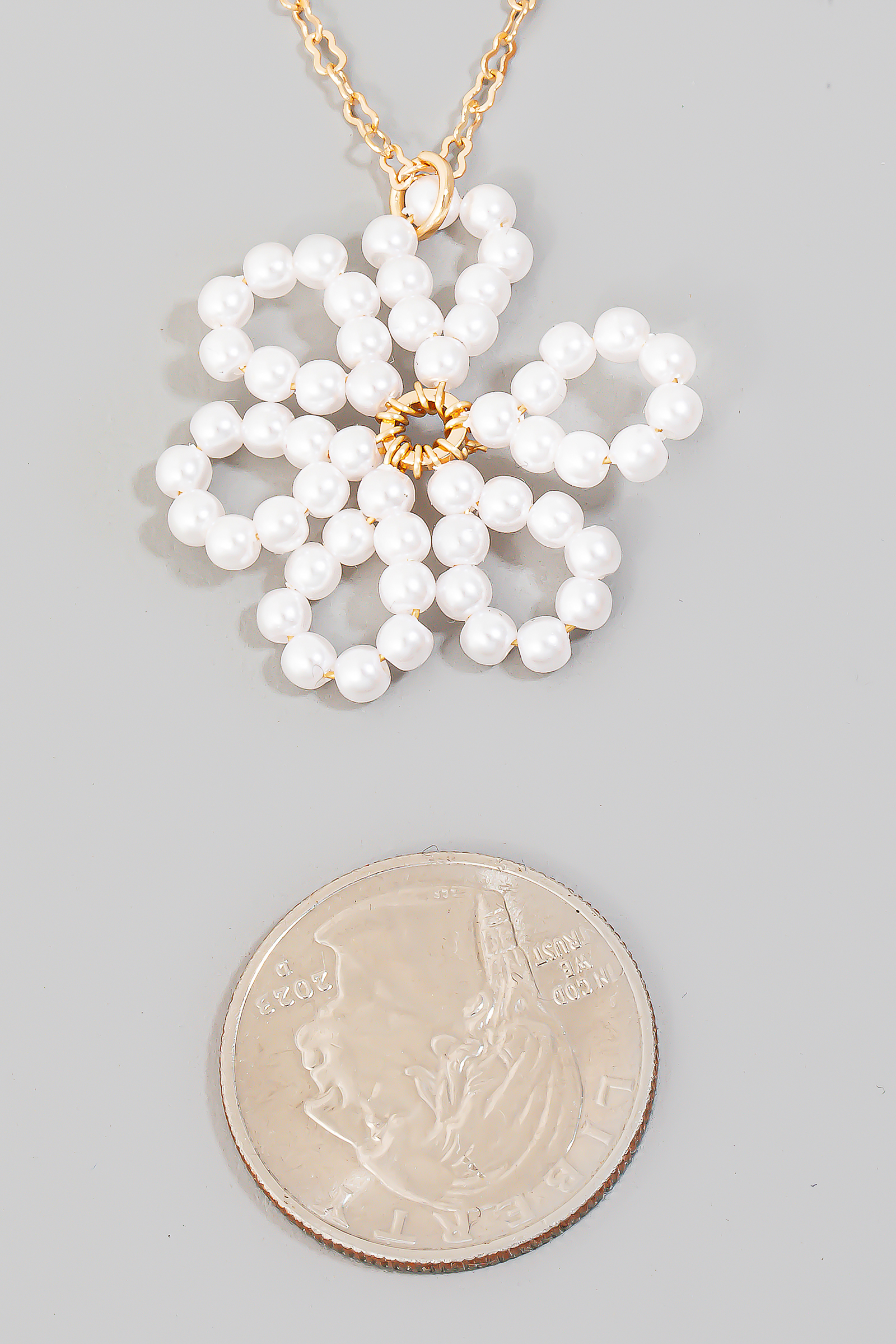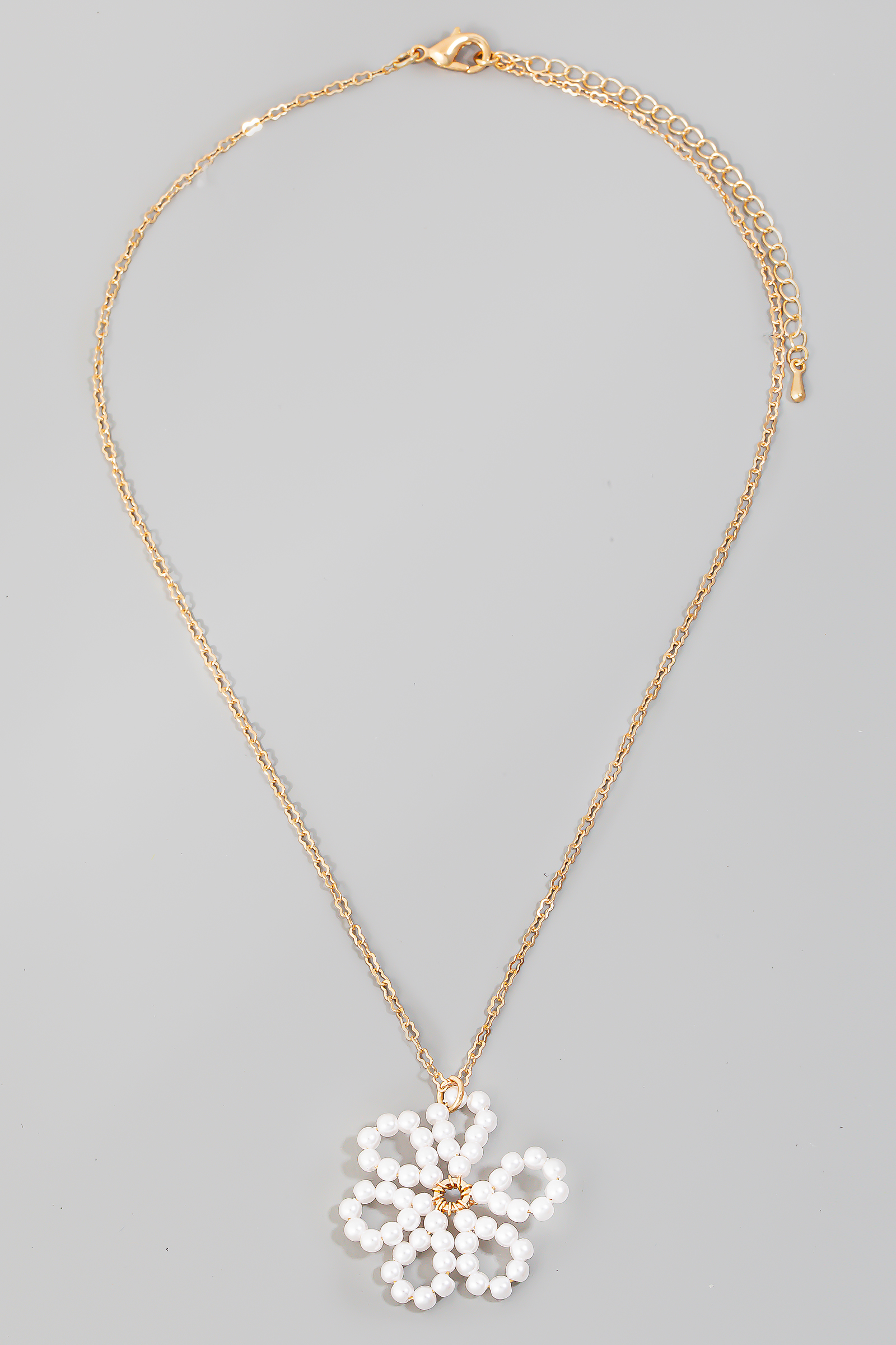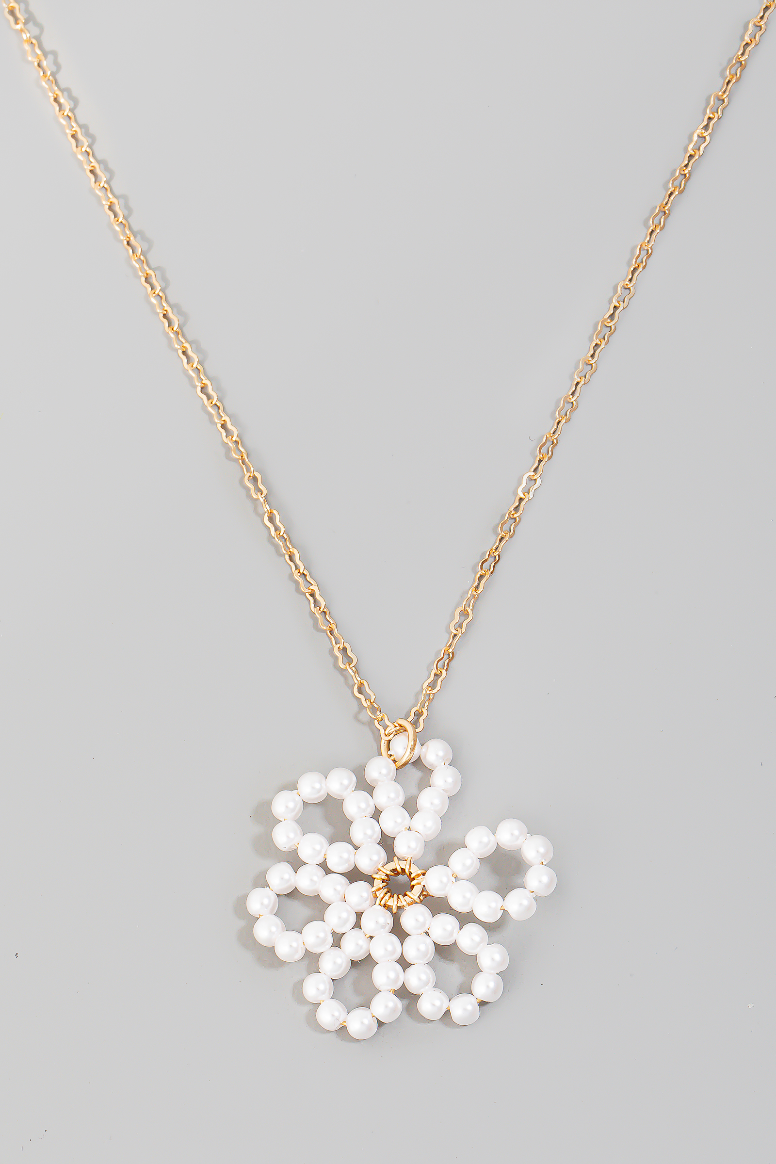 - This chain necklace showcases a unique pearl beaded flower pendant set style. Celebrate individual style with this versatile, eye-catching addition.