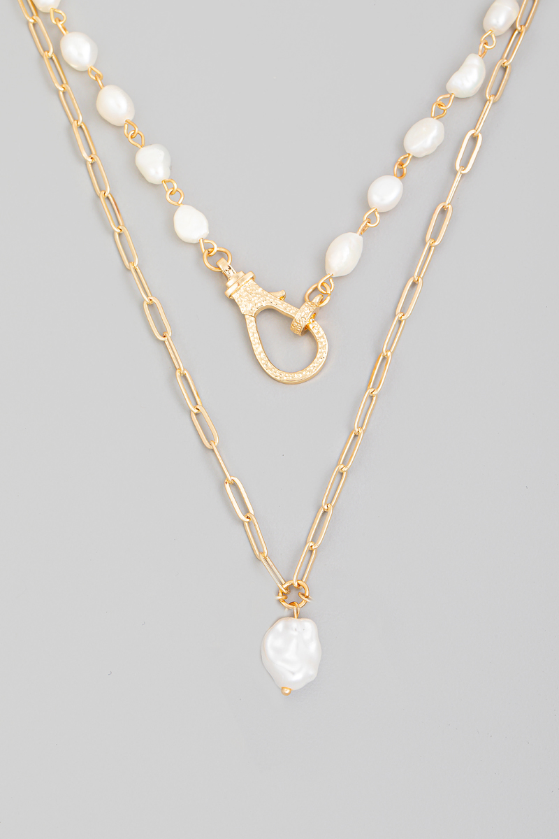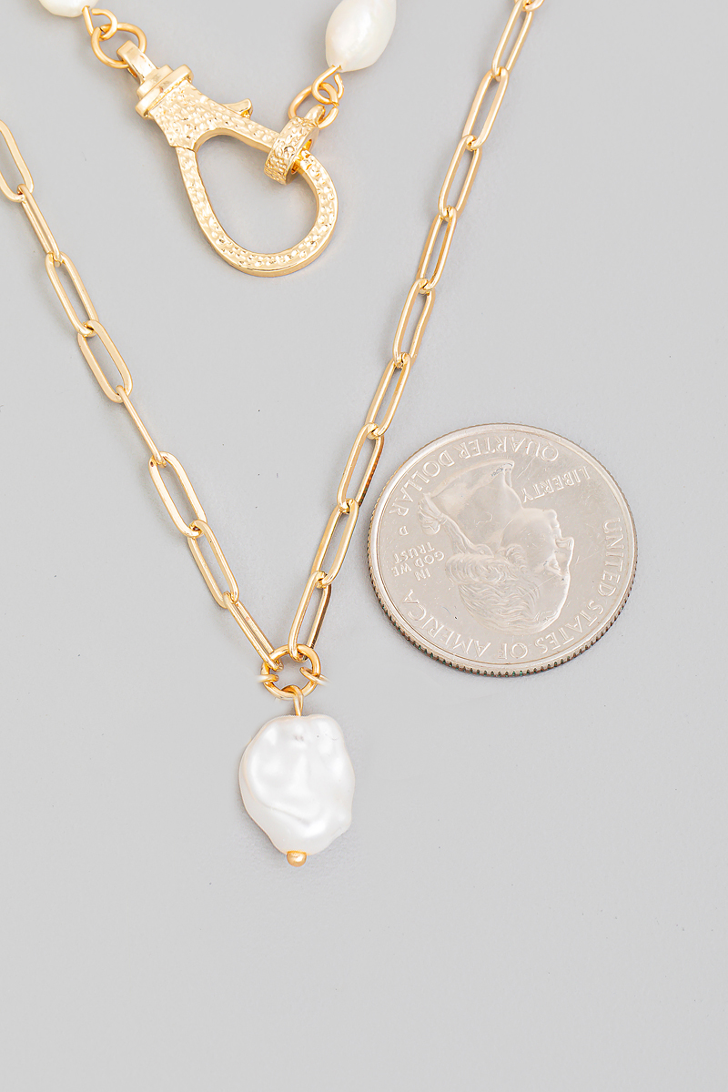 Gold Dipped Box Chain Irregular Pearl Charm Necklace