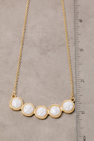 • This necklace showcases a timeless pearl disc bar pendant style. Witness the transformative power of accessories as this piece effortlessly redefines your fashion narrative.