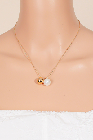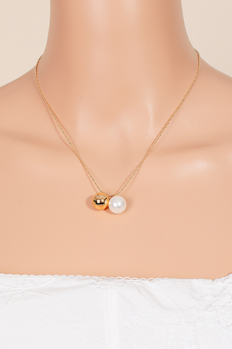 • This chain necklace introduces a stunning pearl and metallic bead charm style. Immerse yourself in the world of understated glamour as this accessory effortlessly exudes timeless appeal.