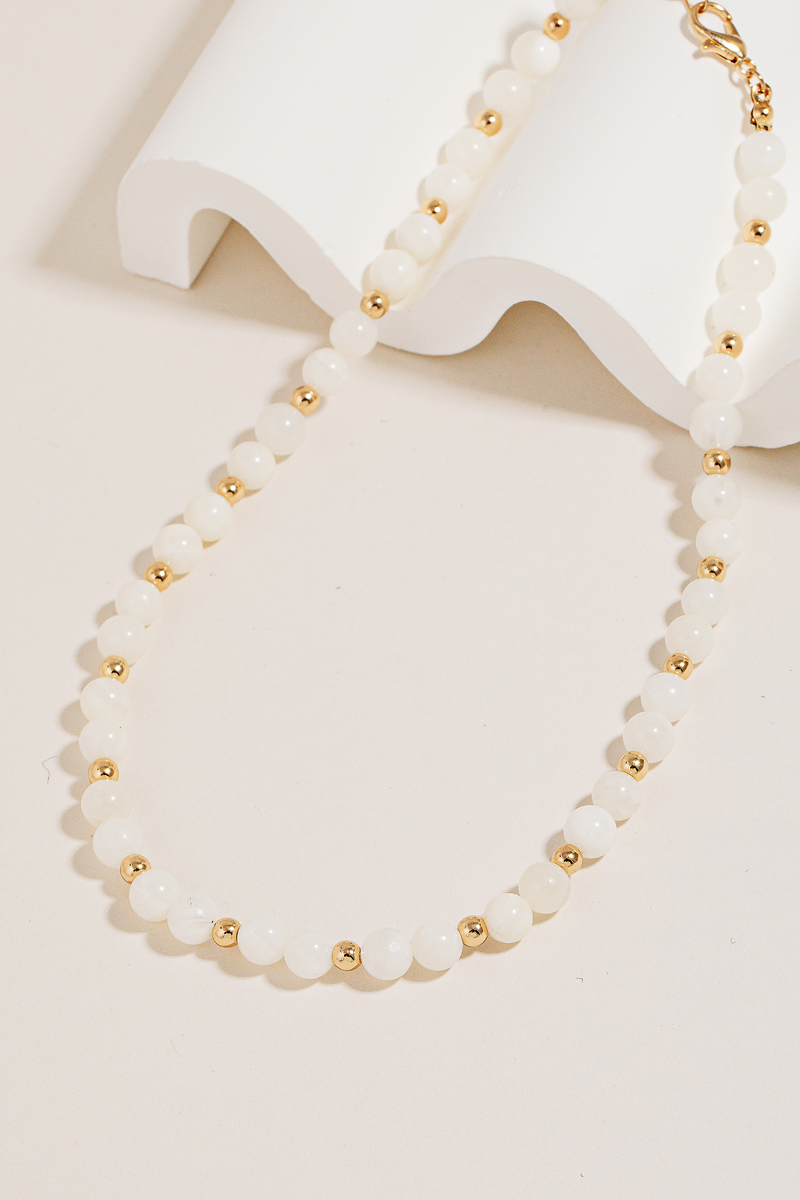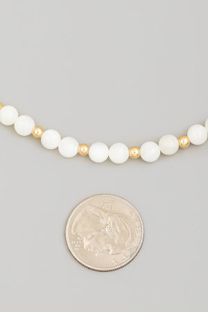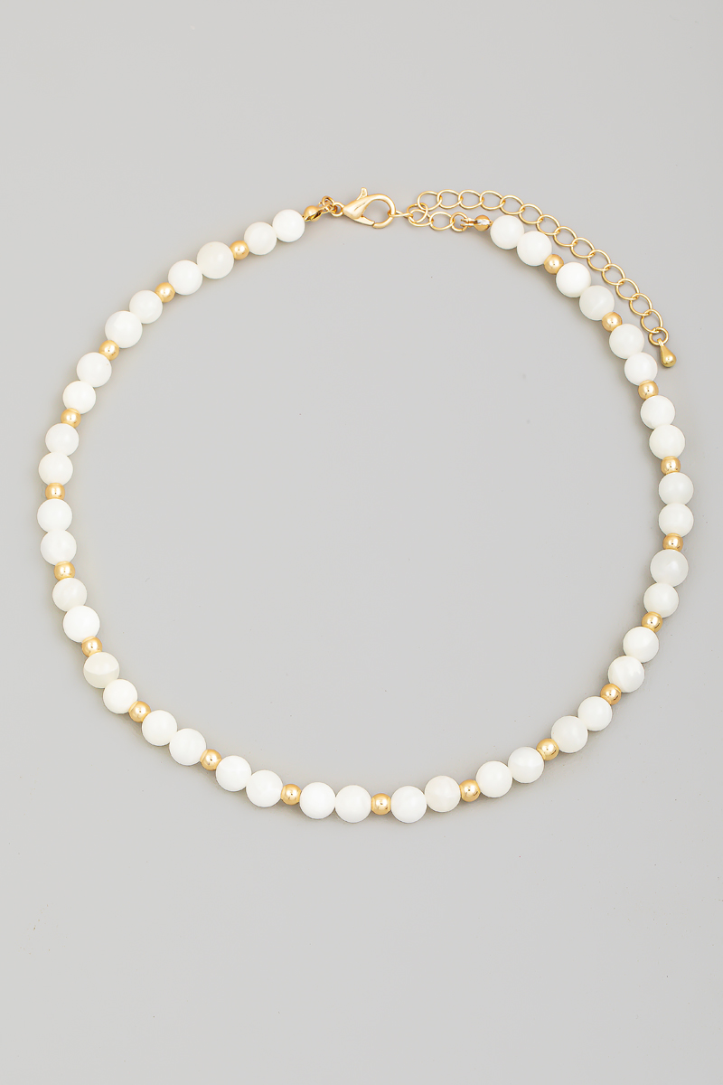 - This necklace introduces a stunning pearl and metallic beaded style. Redefine your look effortlessly with this standout, on-trend piece.