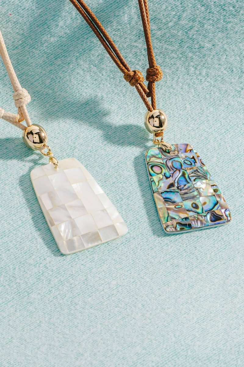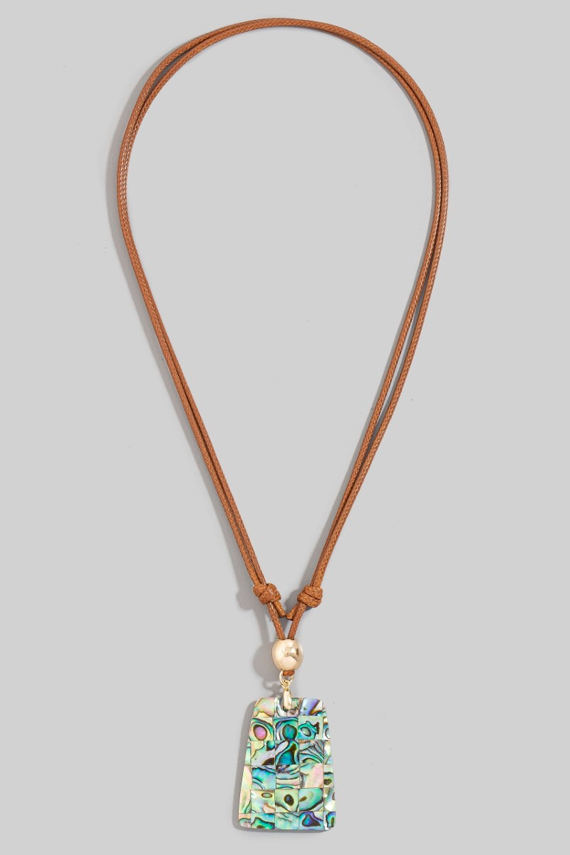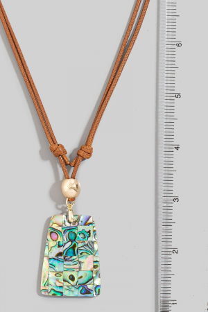 - This pendant necklace brings a stunning shell grid rectangle pendant layered cord necklace style. Savor the allure of detailed craftsmanship in this exquisite pendant necklace.
