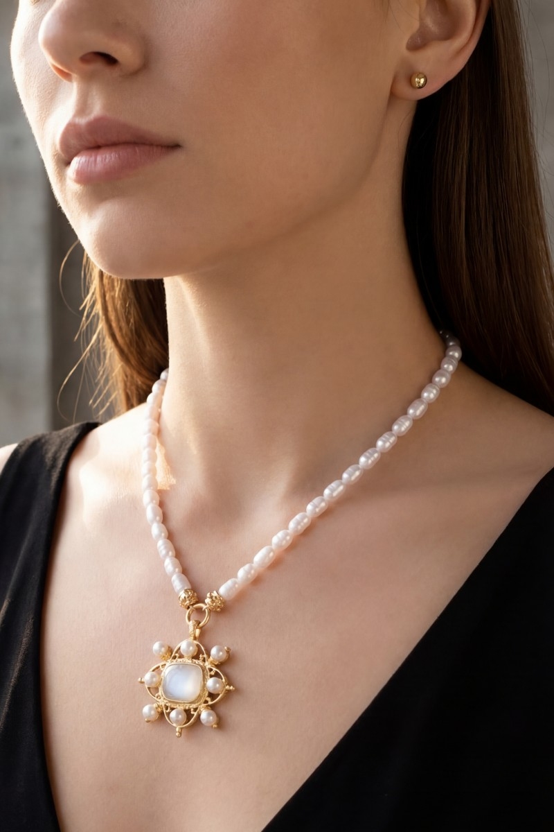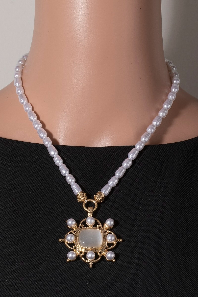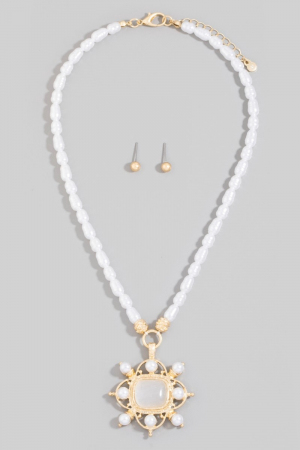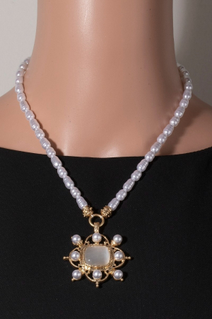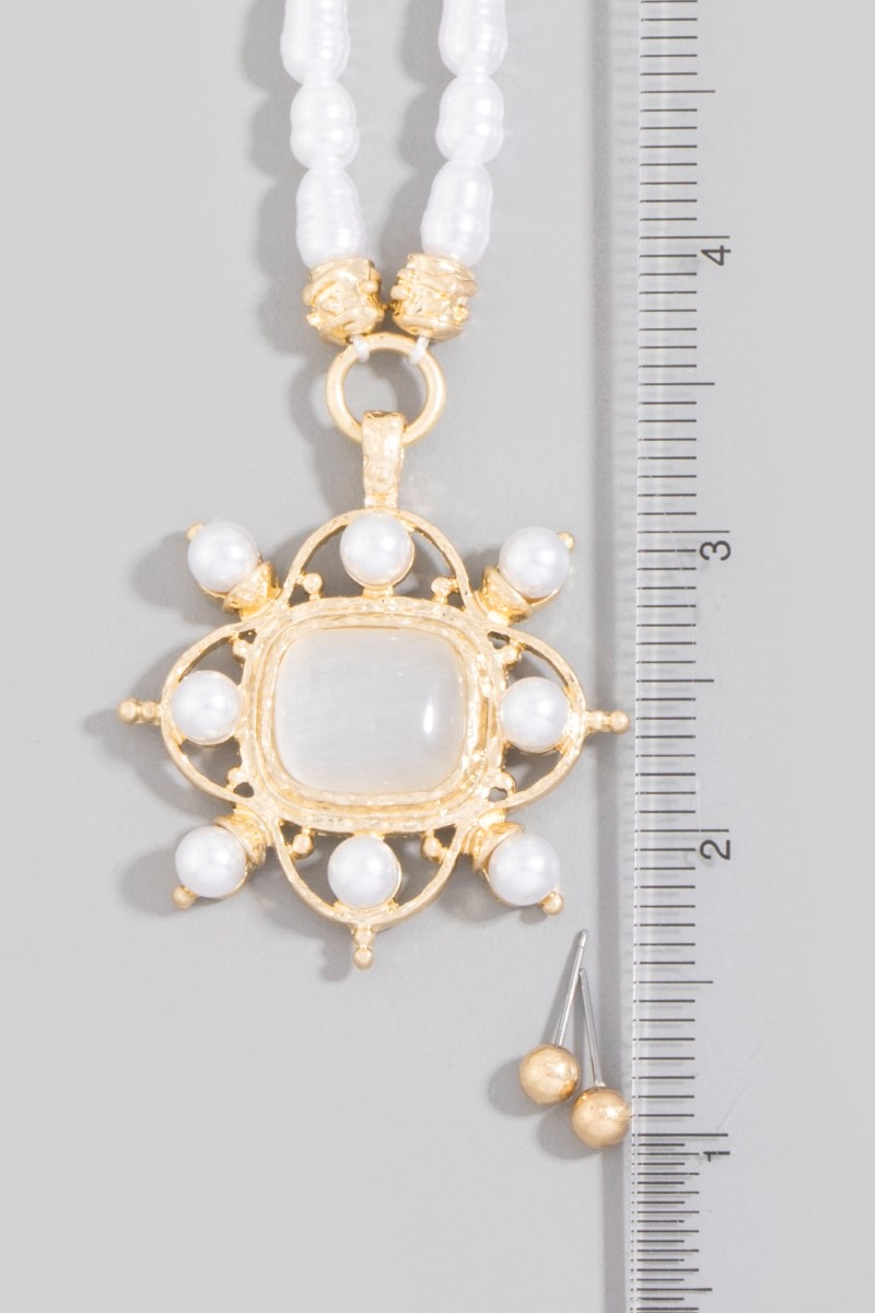 • This necklace set adds a modern pearl beaded ornate statement pendant style. Embark on a journey of sartorial refinement as this necklace set effortlessly complements your fashion sense.