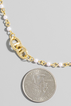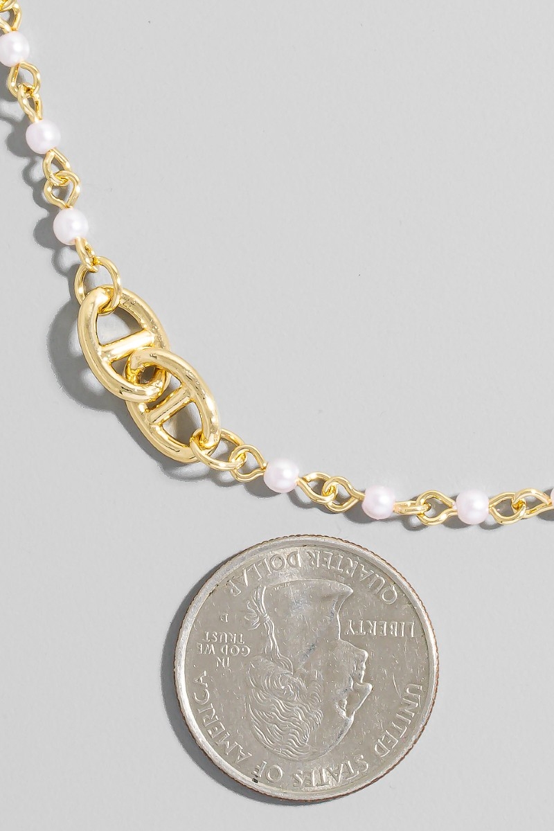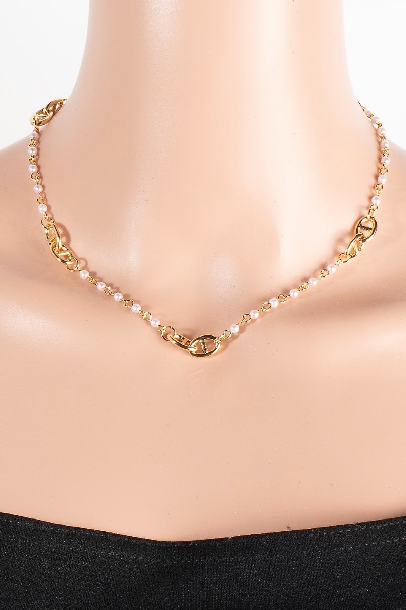 - This chain necklace showcases a unique pearl beads and anchor style. Explore a blend of classic charm and contemporary flair.