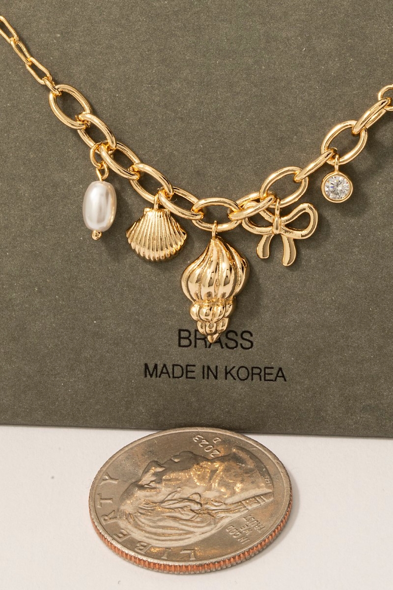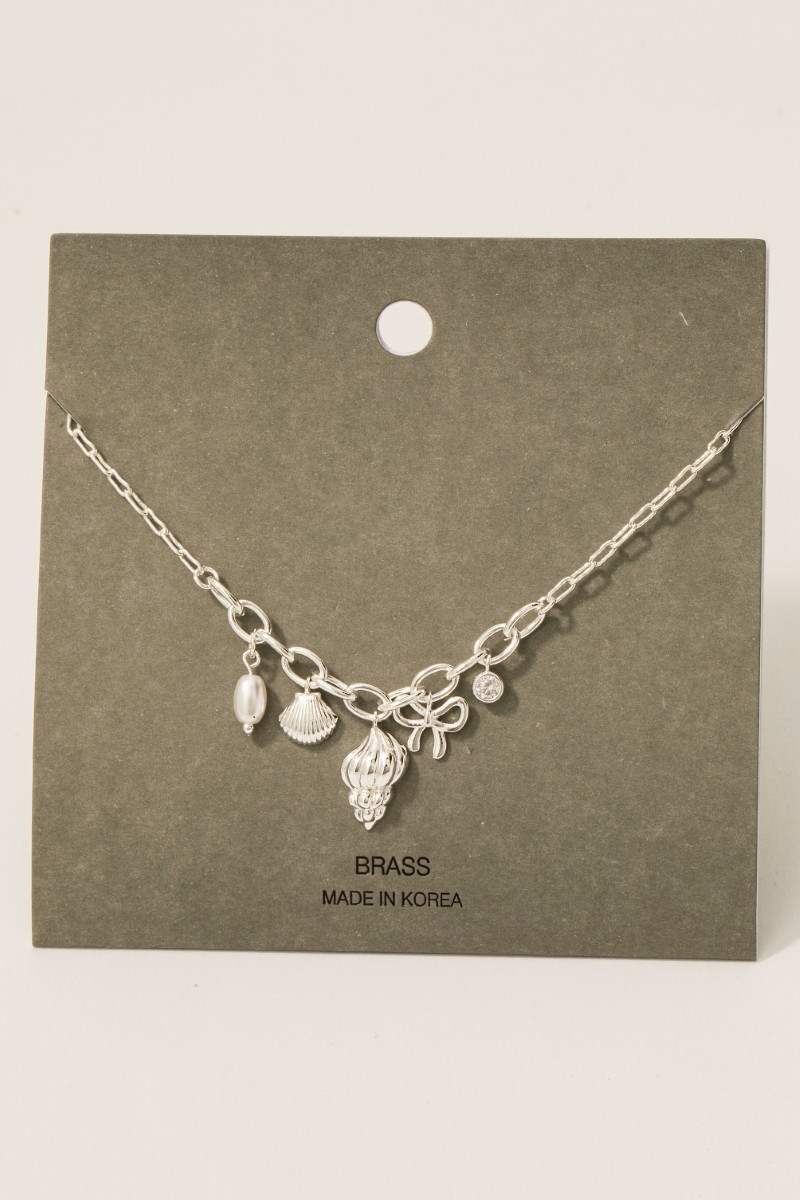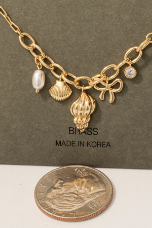 - This chain necklace showcases a timeless pearl cubic zirconia and shell charms style. Unveil modern elegance with this subtly intricate chain necklace.