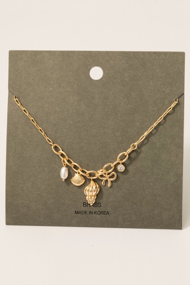 - This chain necklace is featured in our Pearl, Shell and Charms Collection.
