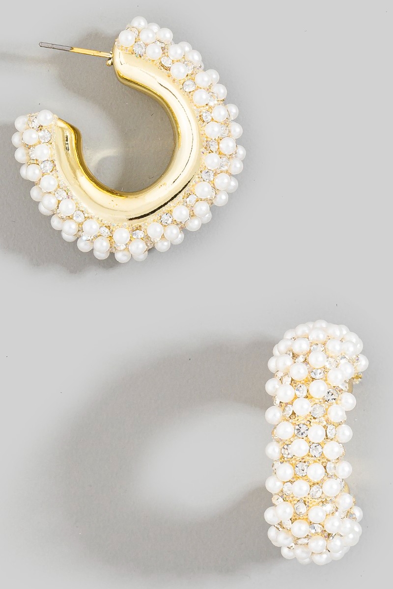 - This pair of hoop earrings showcases a unique pearl and cubic zirconia pave style. Embark on a journey of sartorial refinement as this pair of hoop earrings effortlessly complements your fashion sense.