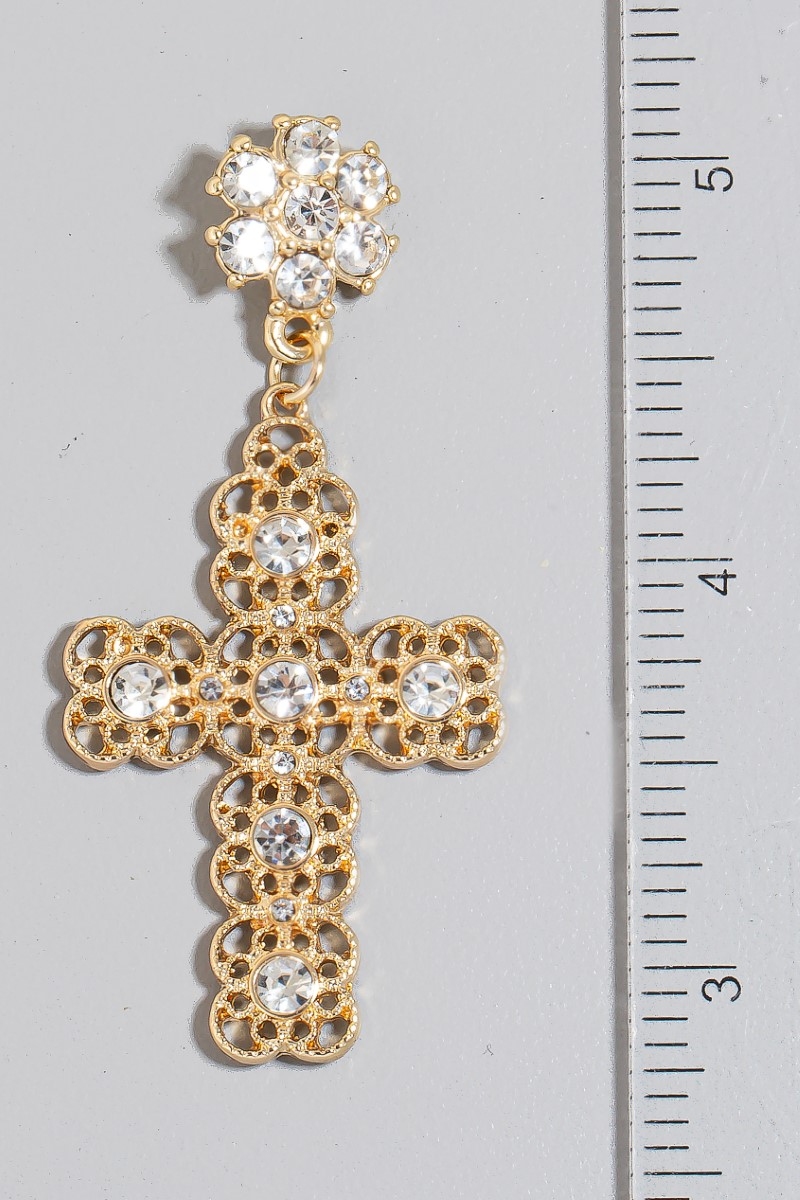 - This pair of dangle earrings brings a stunning pearl stud ornate cross style. Redefine your look effortlessly with this standout, on-trend piece.