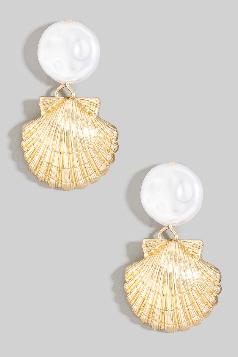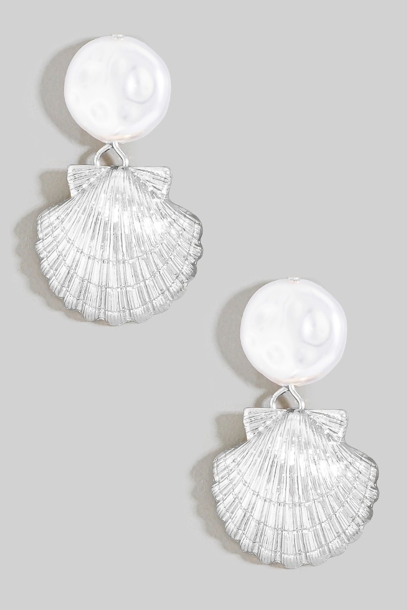 - This pair of drop earrings adds a modern pearl stud seashell style. Experience a subtle blend of modernity and classic charm as this pair of drop earrings effortlessly adorns your ensemble.