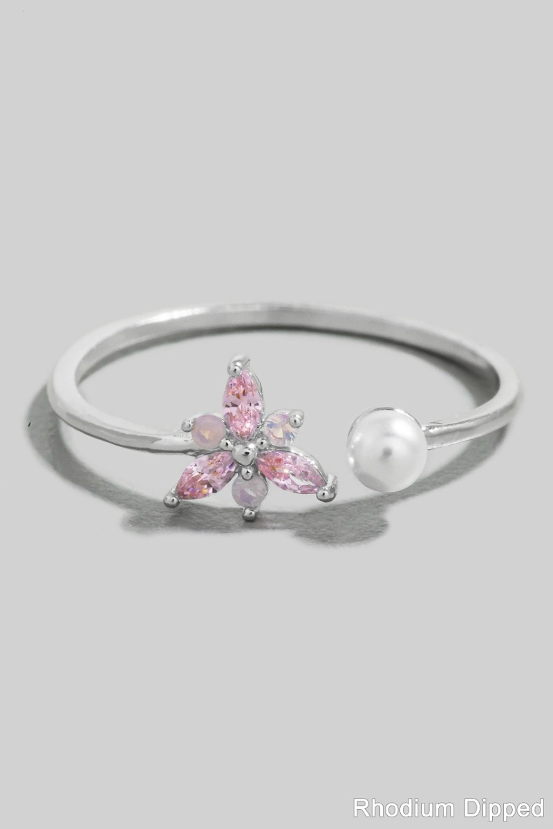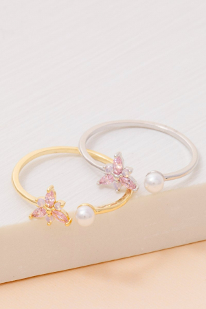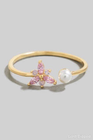 - This ring adds a modern gold dipped cubic zirconia flower pearl open style. Explore a blend of classic charm and contemporary flair.