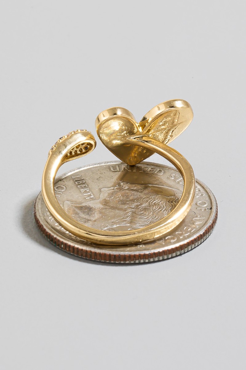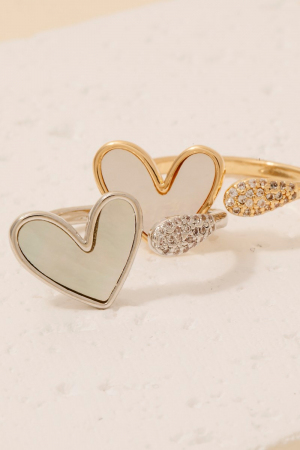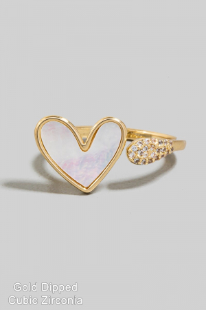 • This ring brings a stunning gold dipped cubic zirconia and mother of pearl heart open band style. Witness the perfect fusion of style and functionality as this ring effortlessly complements your lifestyle.
