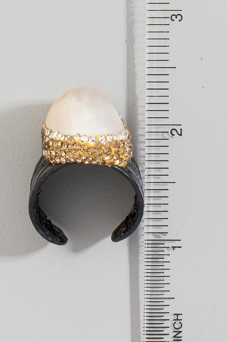 Pearl And Gunmetal Crystal Pave Wide Statement Ring