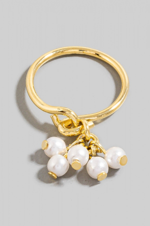 Gold Dipped Cz Cluster And Glass Pearl Ring