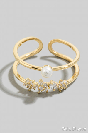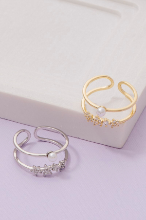 Pearl Stud Layered Open Band Ring