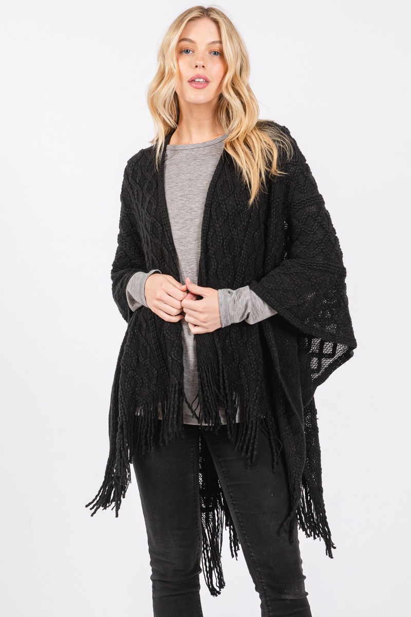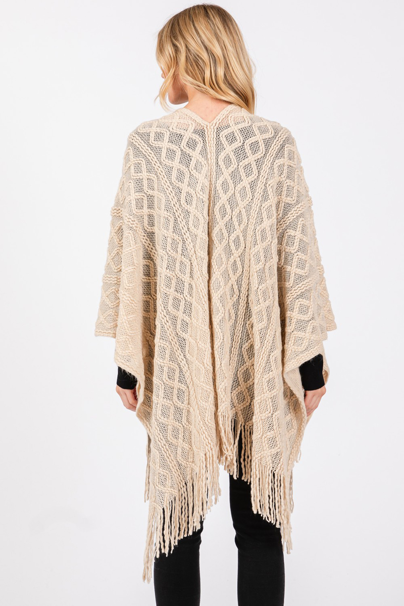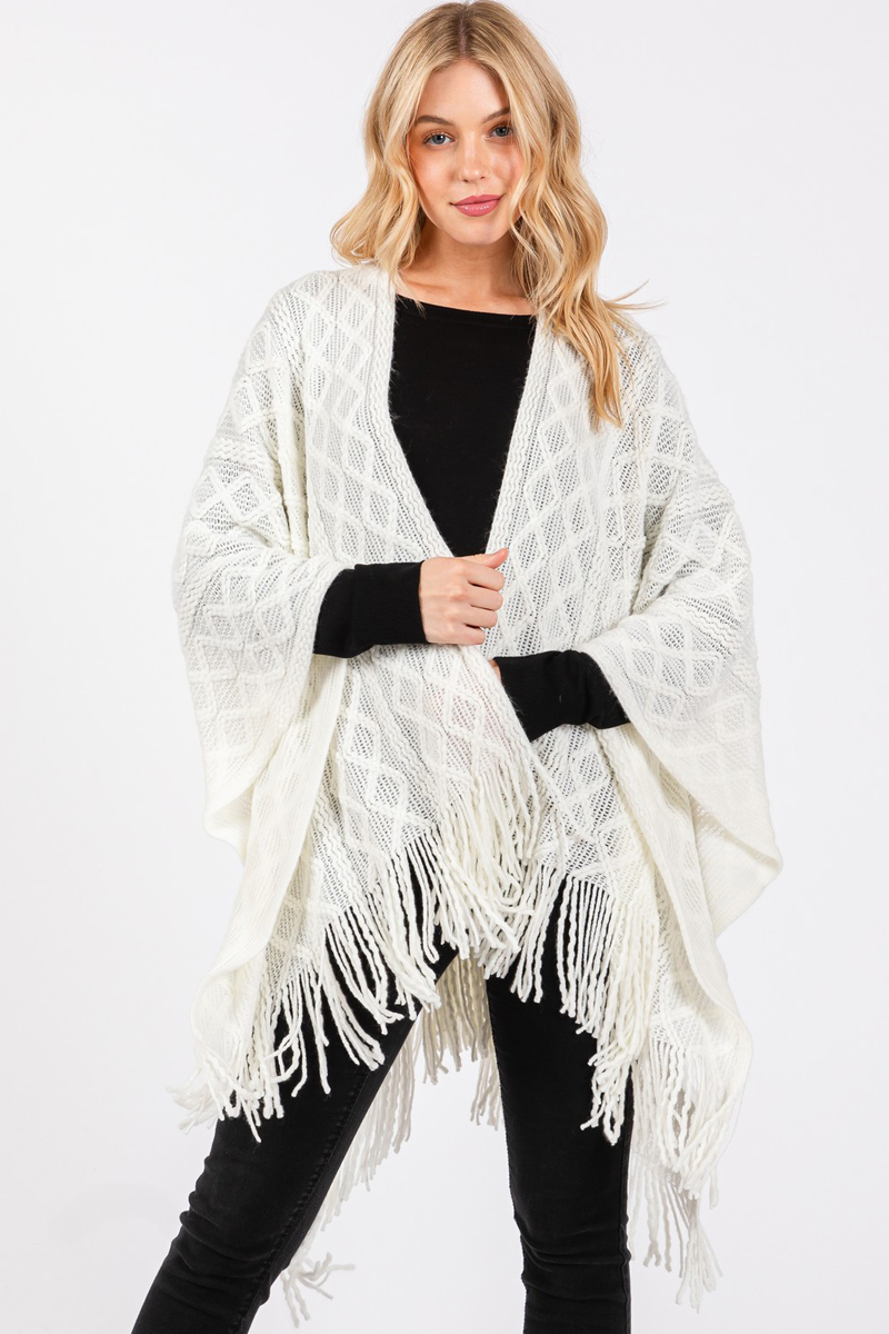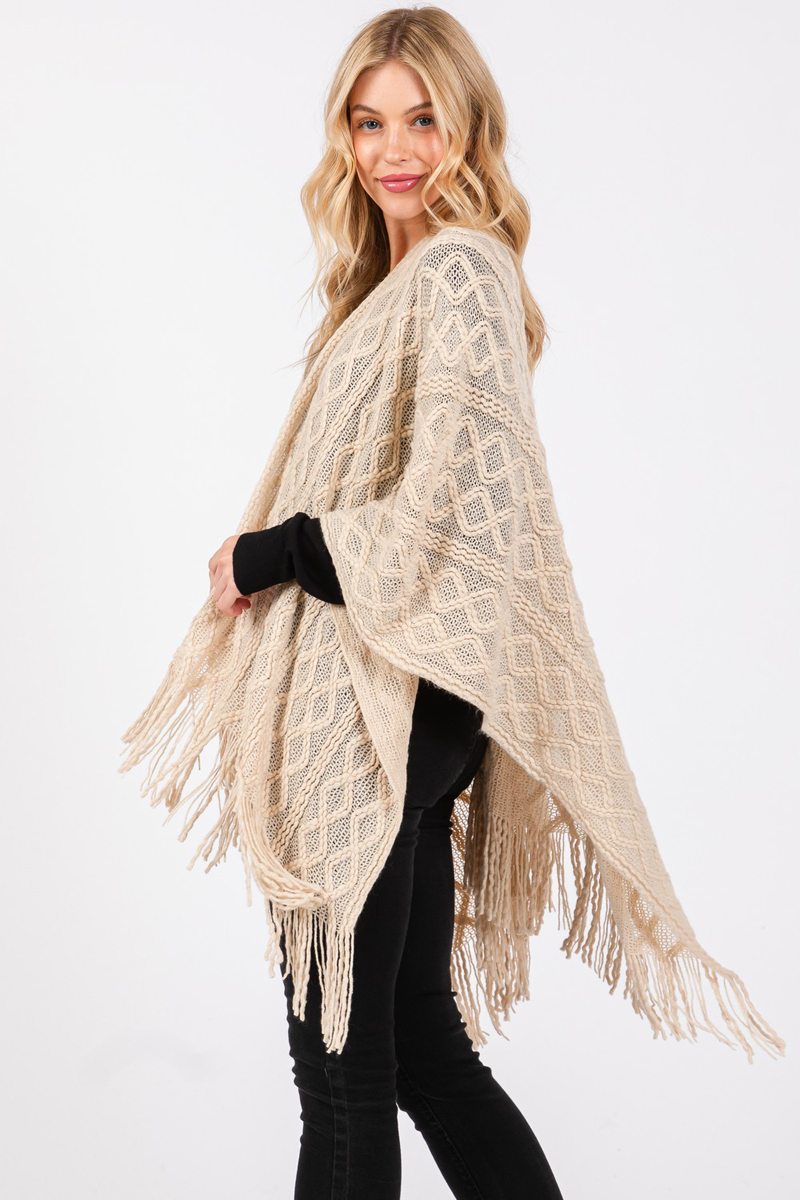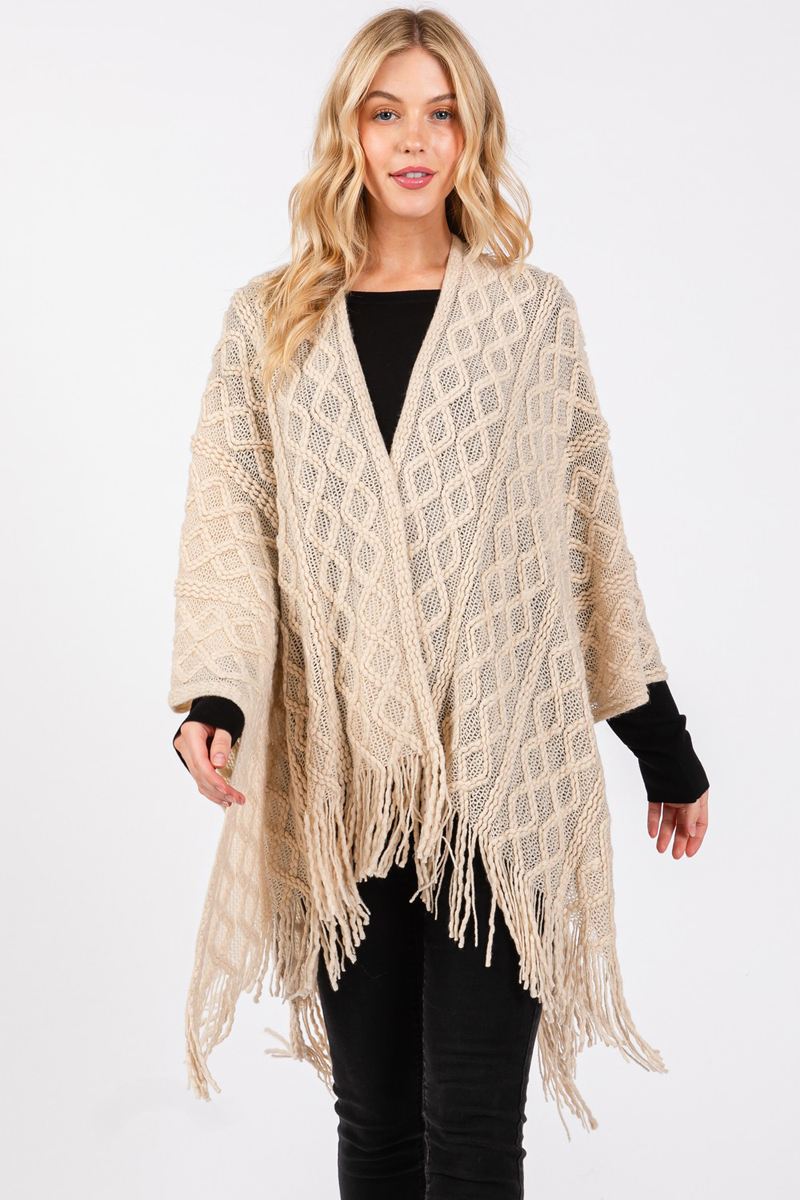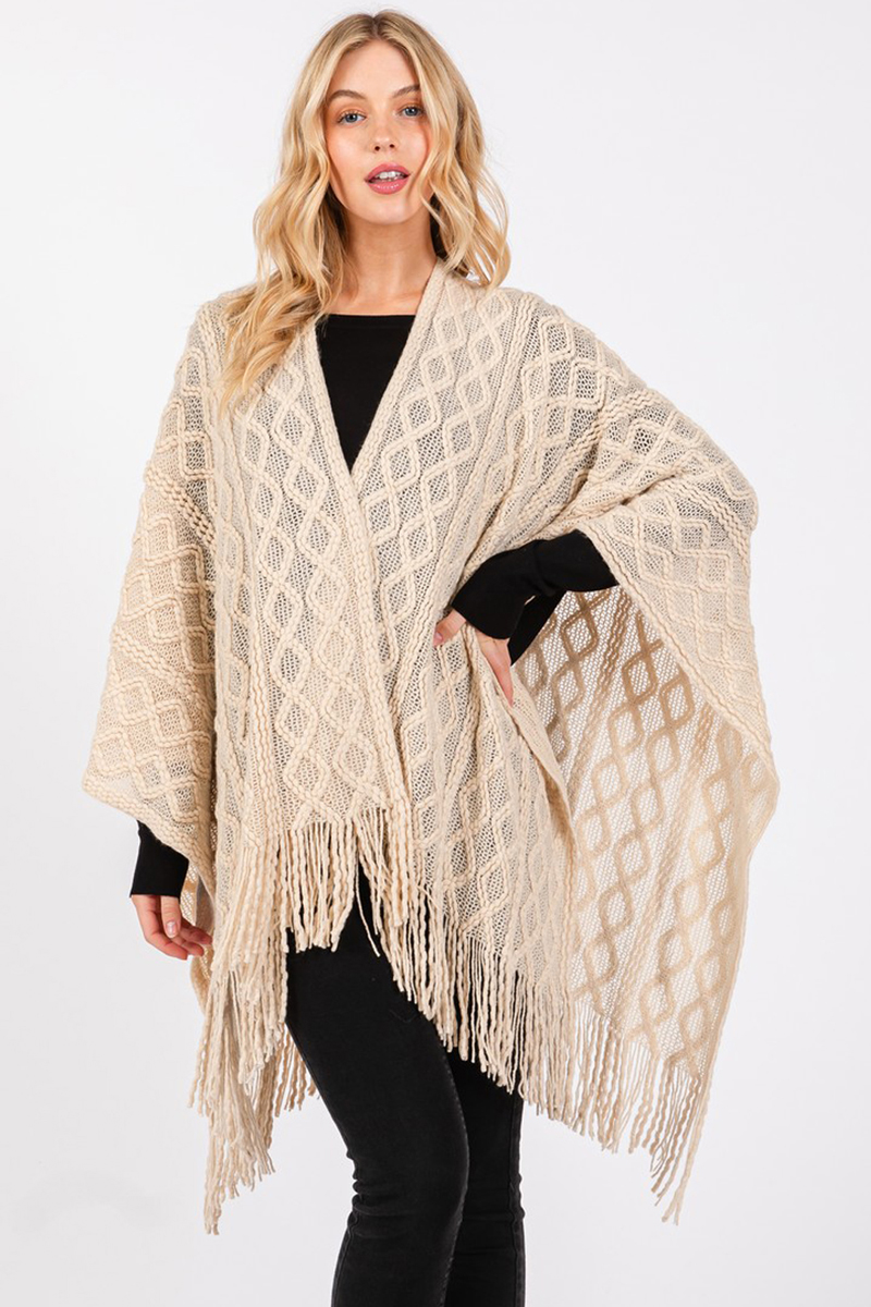 - This poncho displays a fashionable diamond pattern tassel ruana style. Savor the allure of detailed craftsmanship in this exquisite poncho.