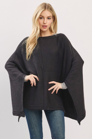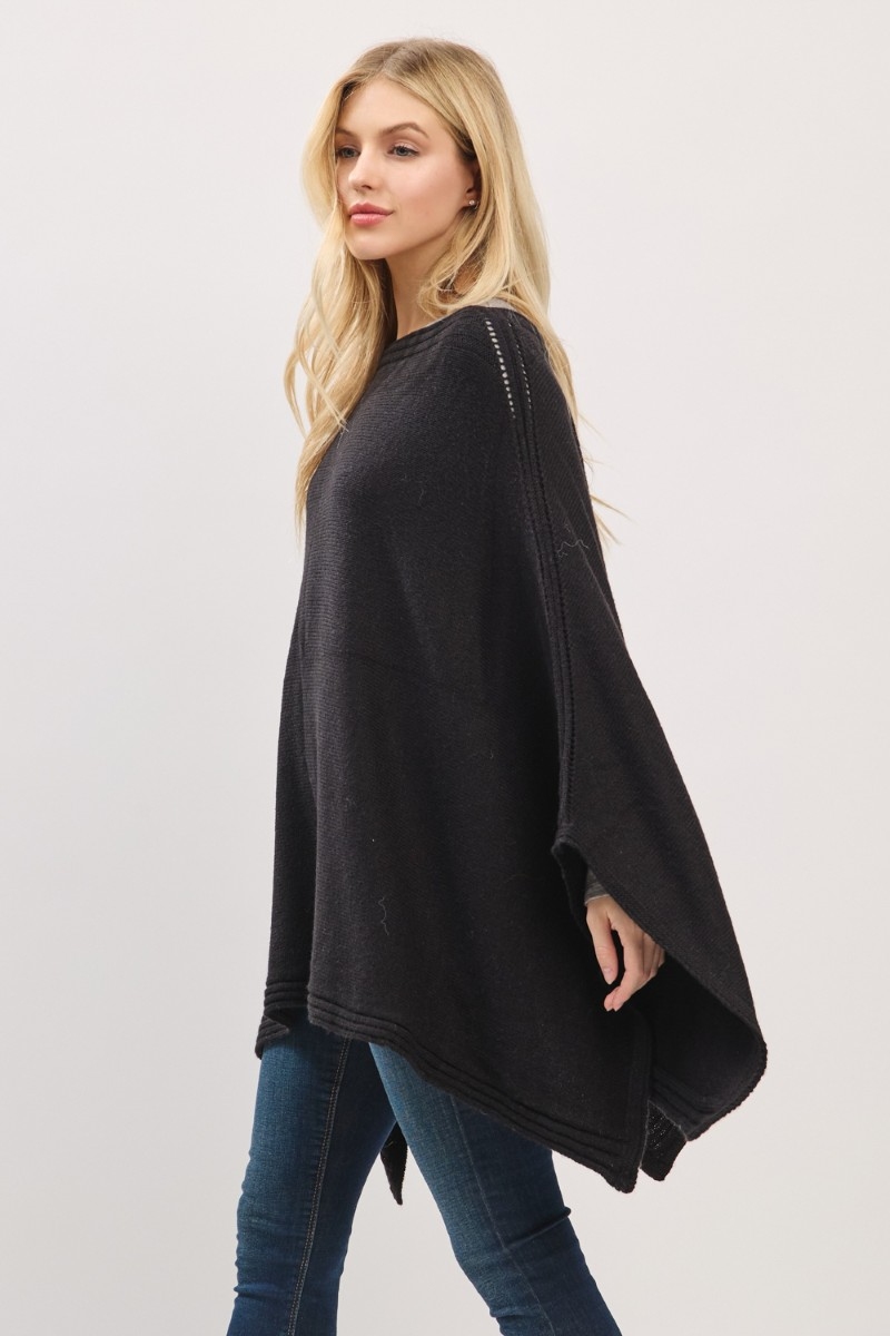- This poncho brings a stunning solid knit wide style. Revel in the intricate design that effortlessly distinguishes this poncho, making it a statement piece.