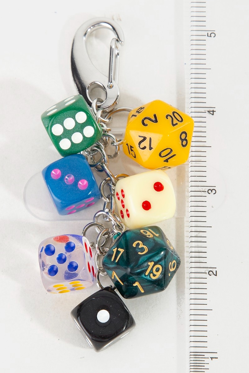 - This bag charm brings a luxurious mixed seven dice chain style. Immerse yourself in the details of design, as this bag charm effortlessly becomes a conversation starter.