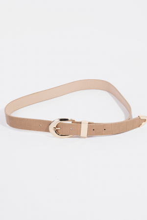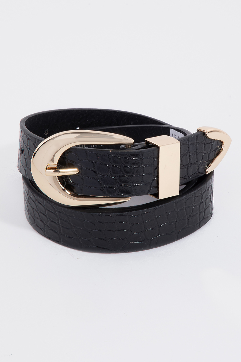 - This leather belt displays a fashionable alligator skin detail vegan style. Unveil modern elegance with this subtly intricate leather belt.