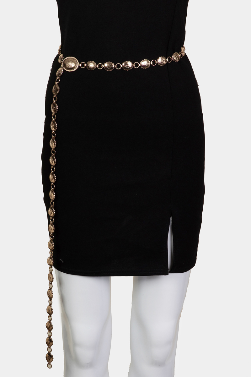 - This belt showcases a timeless oval chain link style. Embark on a journey of sartorial refinement as this belt effortlessly complements your fashion sense.
