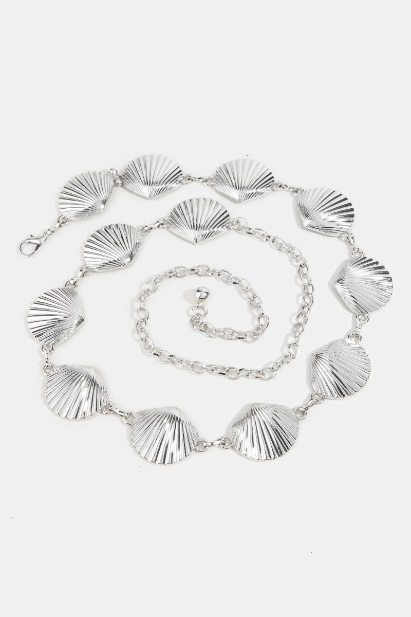 - This chain belt displays a fashionable seashell link style. Revel in the intricate design that effortlessly distinguishes this chain belt, making it a statement piece.