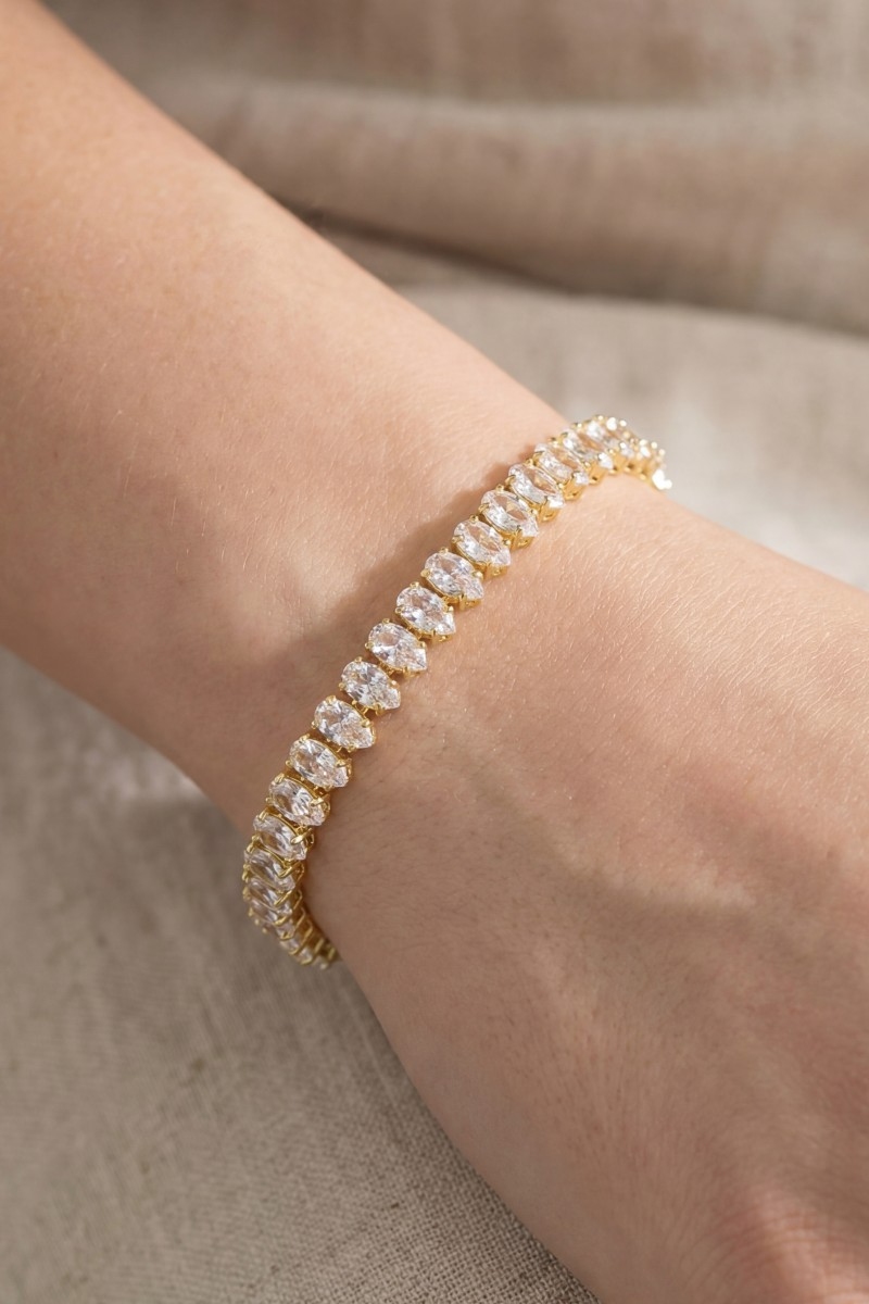 - This bracelet displays a vibrant cz teardrop chain link style. Experience refined sophistication with this understated yet stylish piece.