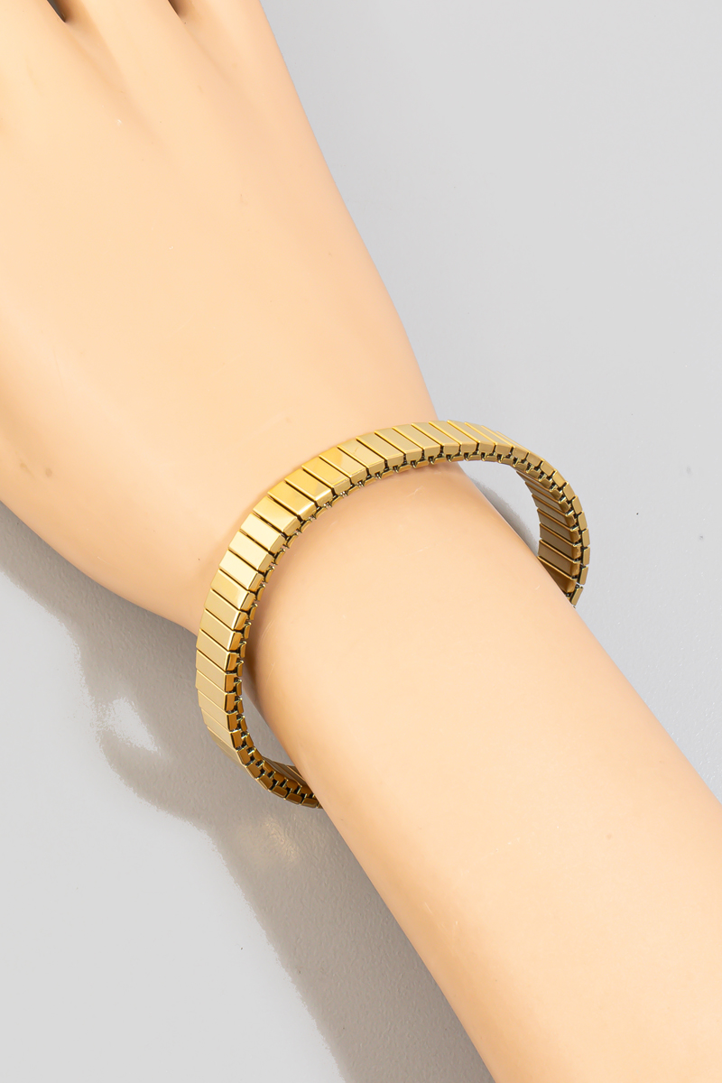 - This bracelet displays a vibrant rectangle metallic bars elastic style. Delight in the nuanced details that make this bracelet a testament to fine design and impeccable taste.