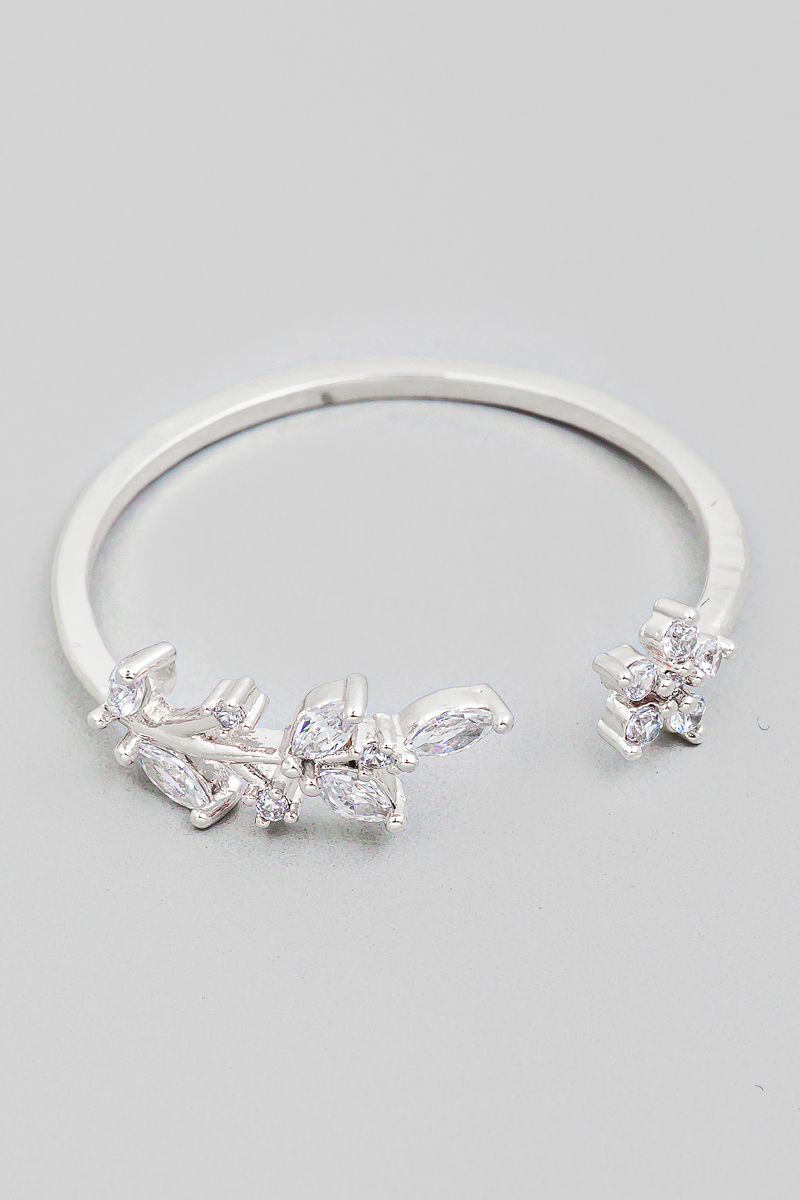 - This ring showcases a timeless delicate rhinestone leaf open style. Redefine your look effortlessly with this standout, on-trend piece.