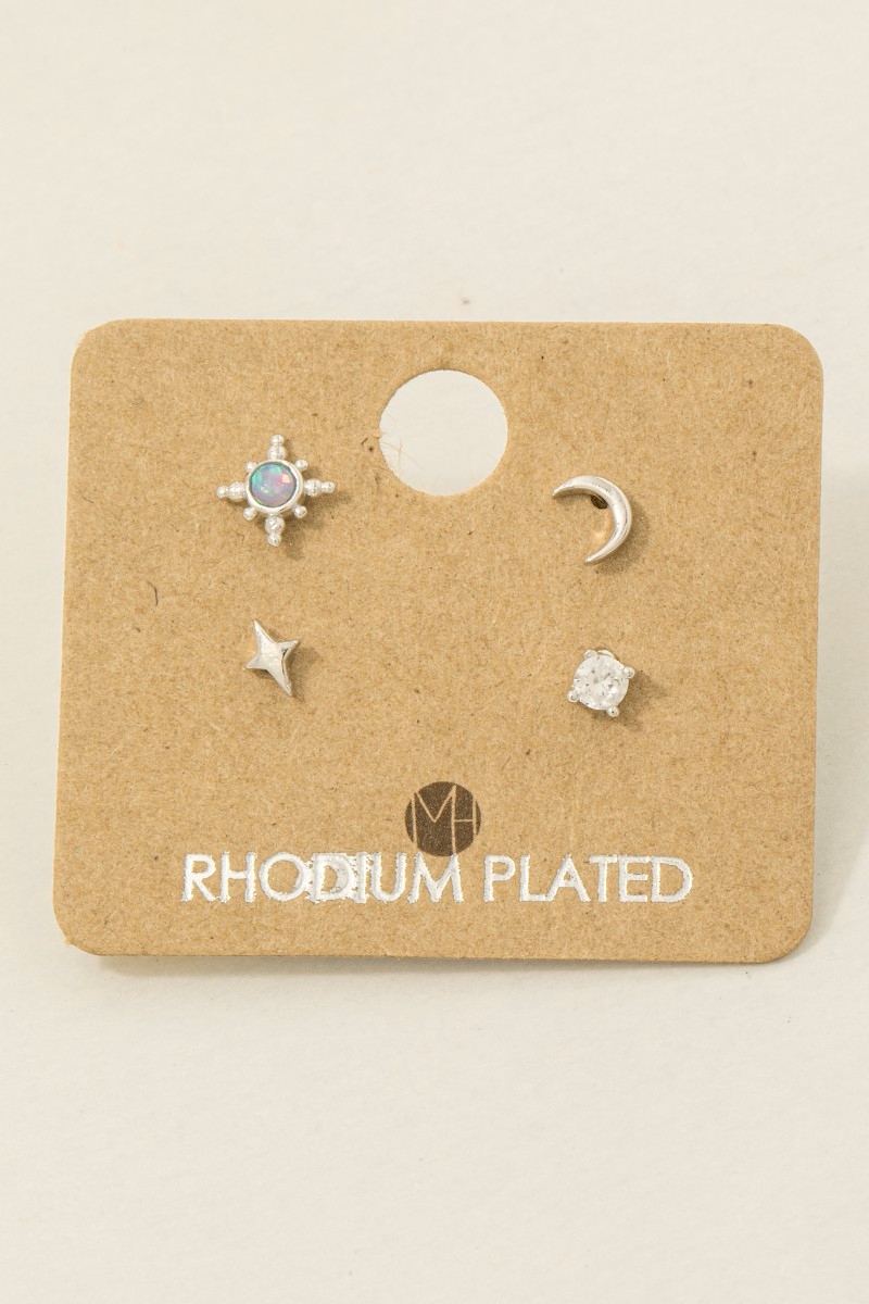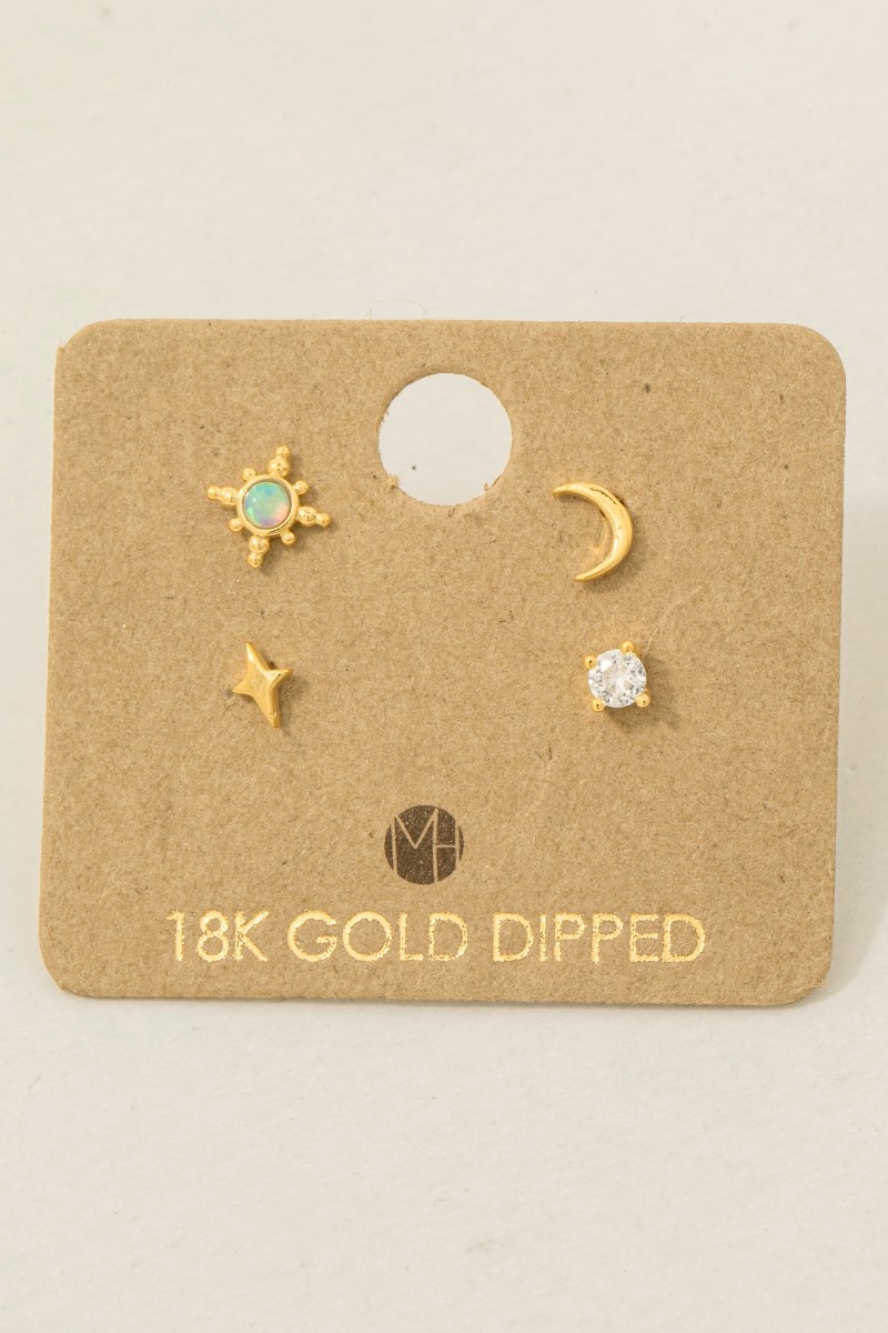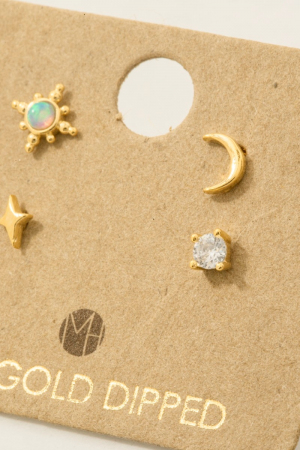 • This trending pair of earrings introduces a stunning gold dipped 4pc star moon stud earrings set style. Witness the perfect fusion of style and functionality as this trending pair of earrings effortlessly complements your lifestyle.