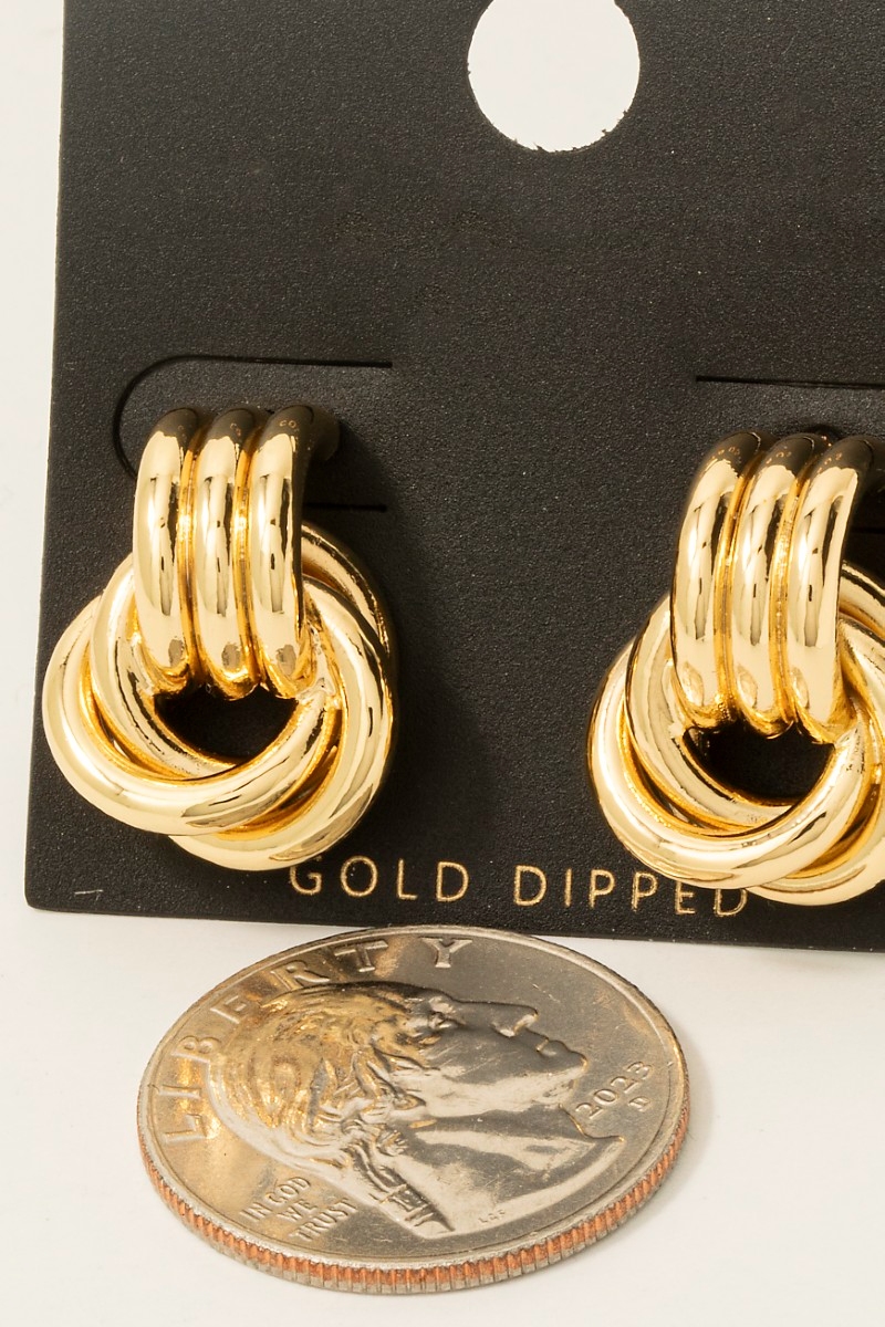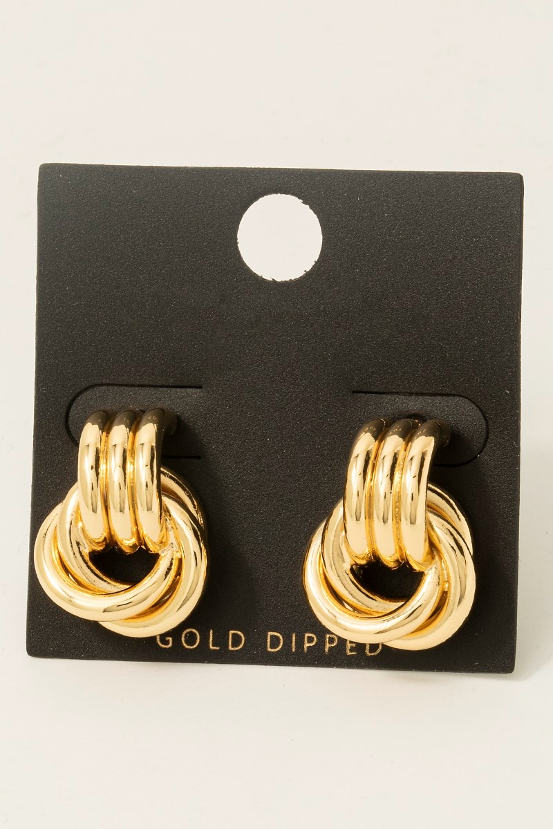 - This pair of earrings features a fashionable gold dipped layered door knocker style. Celebrate individual style with this versatile, eye-catching addition.