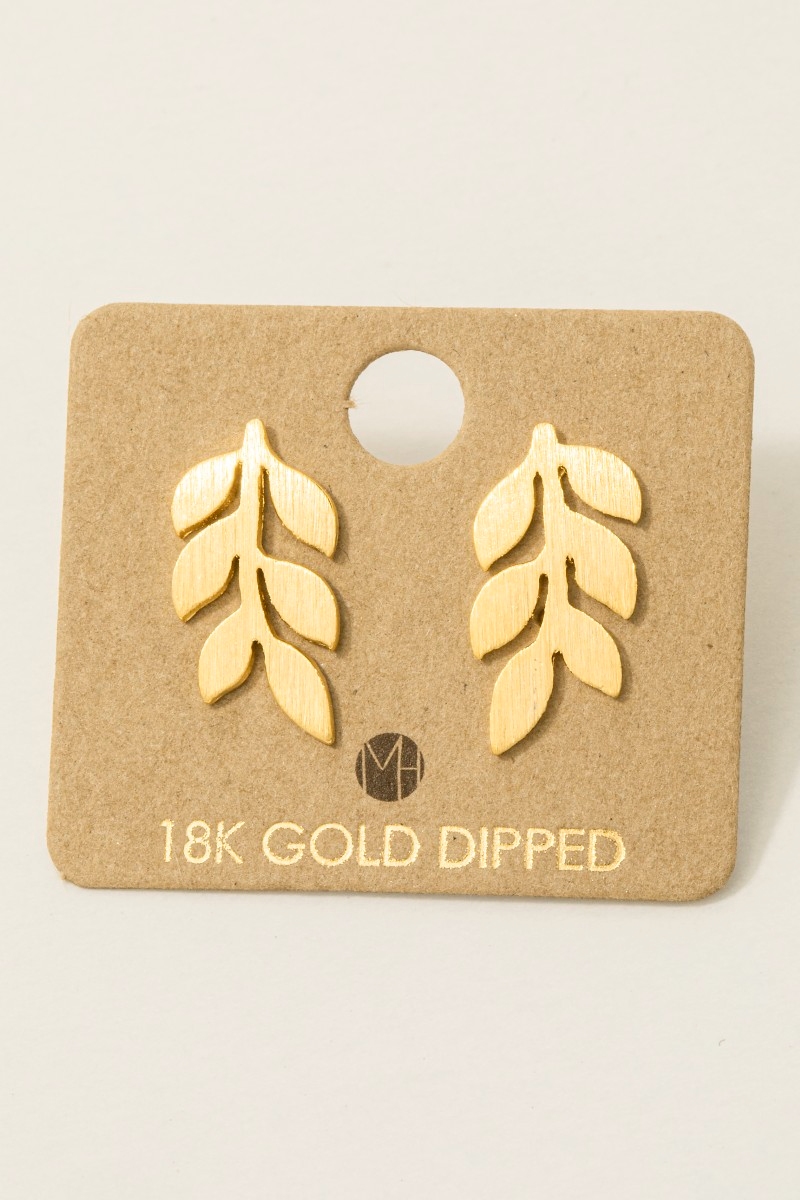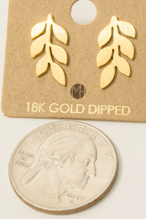 • This pair of earrings features a fashionable mini gold dipped leafy branch stud earring style. Indulge in the allure of exquisite craftsmanship as this pair of earrings effortlessly adds a touch of luxury to your attire.