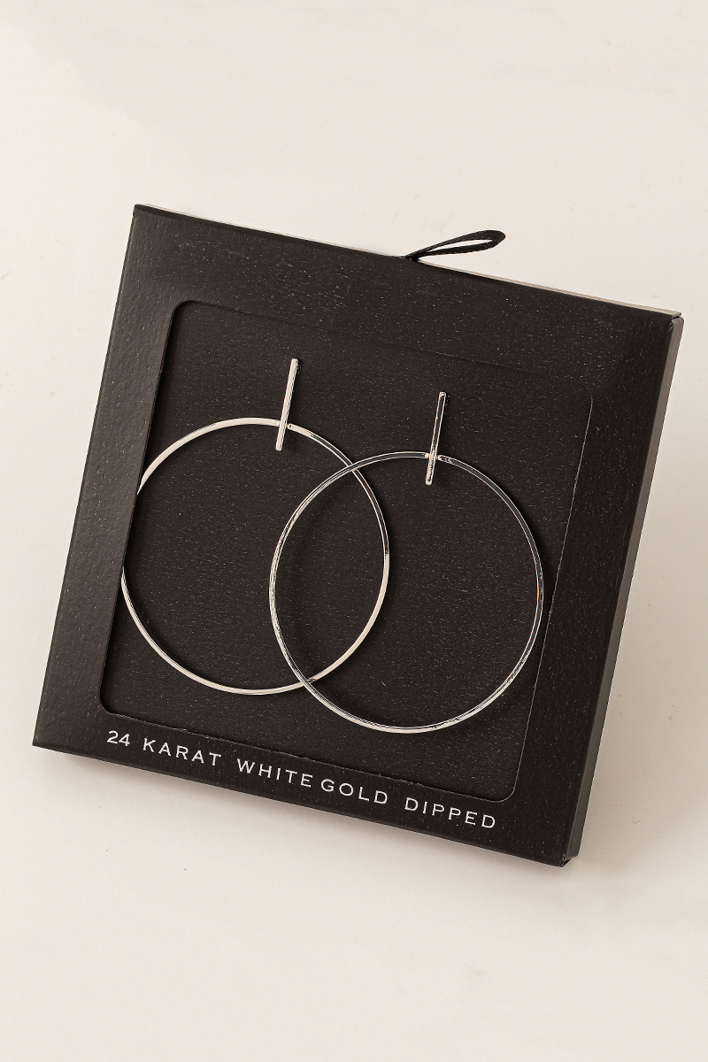 - This pair of earrings displays a vibrant gold dipped thin hoop drop earring style. Immerse yourself in the world of understated glamour as this pair of earrings effortlessly exudes timeless appeal.