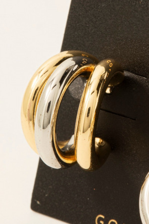 - This pair of hoop earrings showcases a timeless gold dipped two tone layered tube style. Immerse yourself in fashion finesse with this statement pair of hoop earrings.