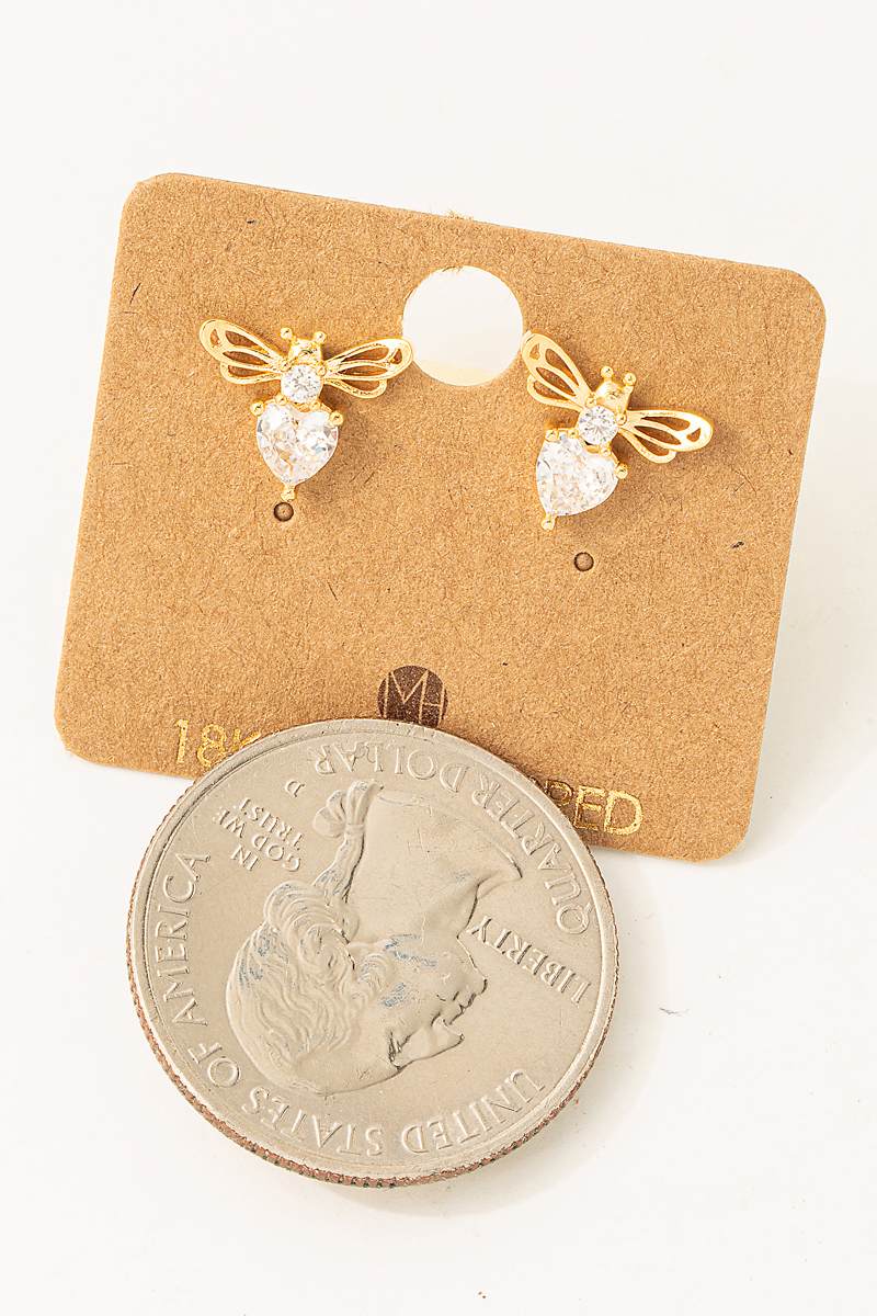 • This pair of stud earrings displays a vibrant rhinestone bee style. Step into a world of refined taste as this pair of stud earrings effortlessly refines the details of your outfit.