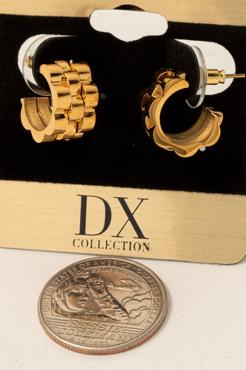 • This pair of hoop earrings showcases a timeless stainless steel layered style. Discover the perfect balance of functionality and fashion.