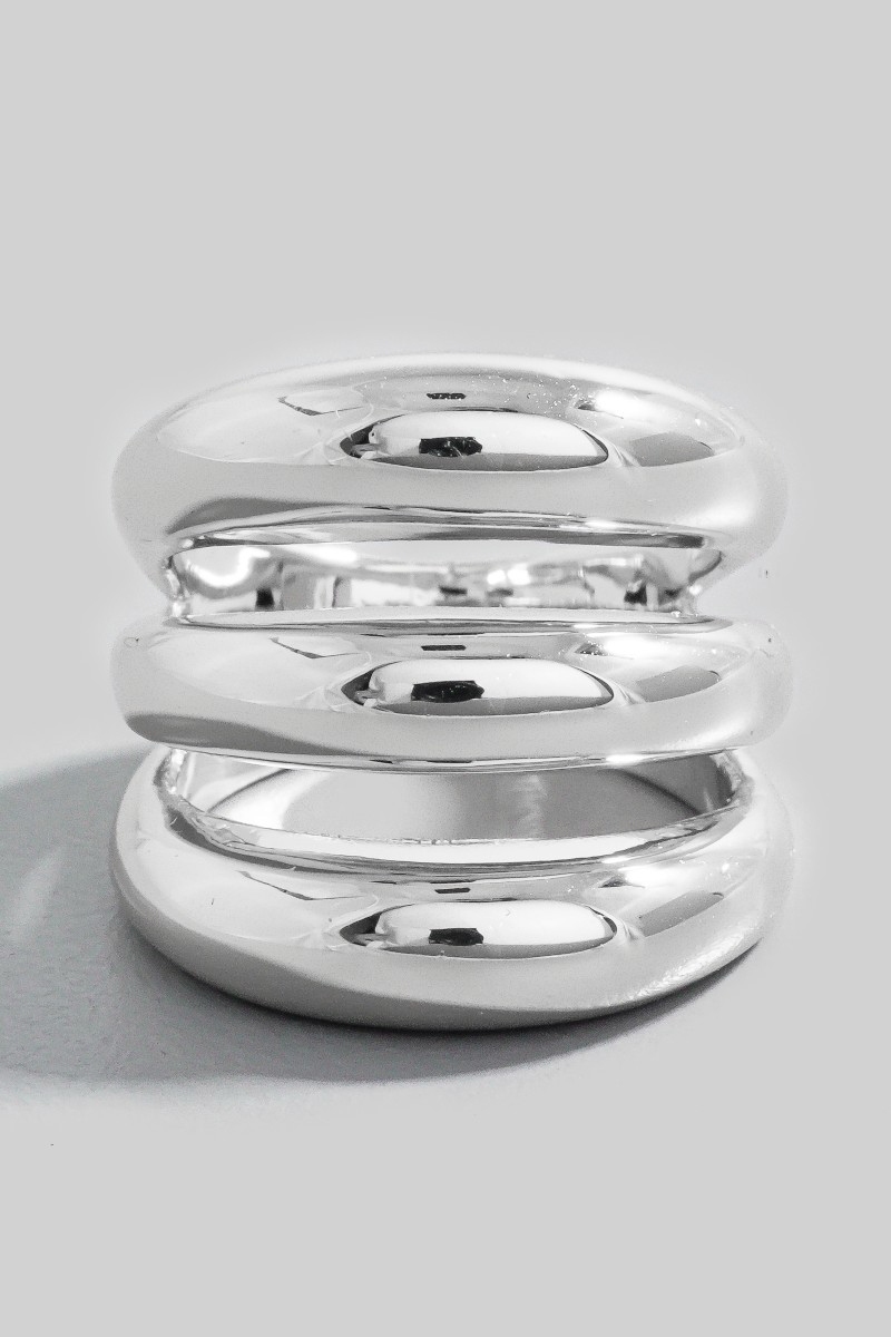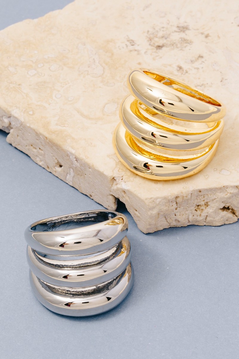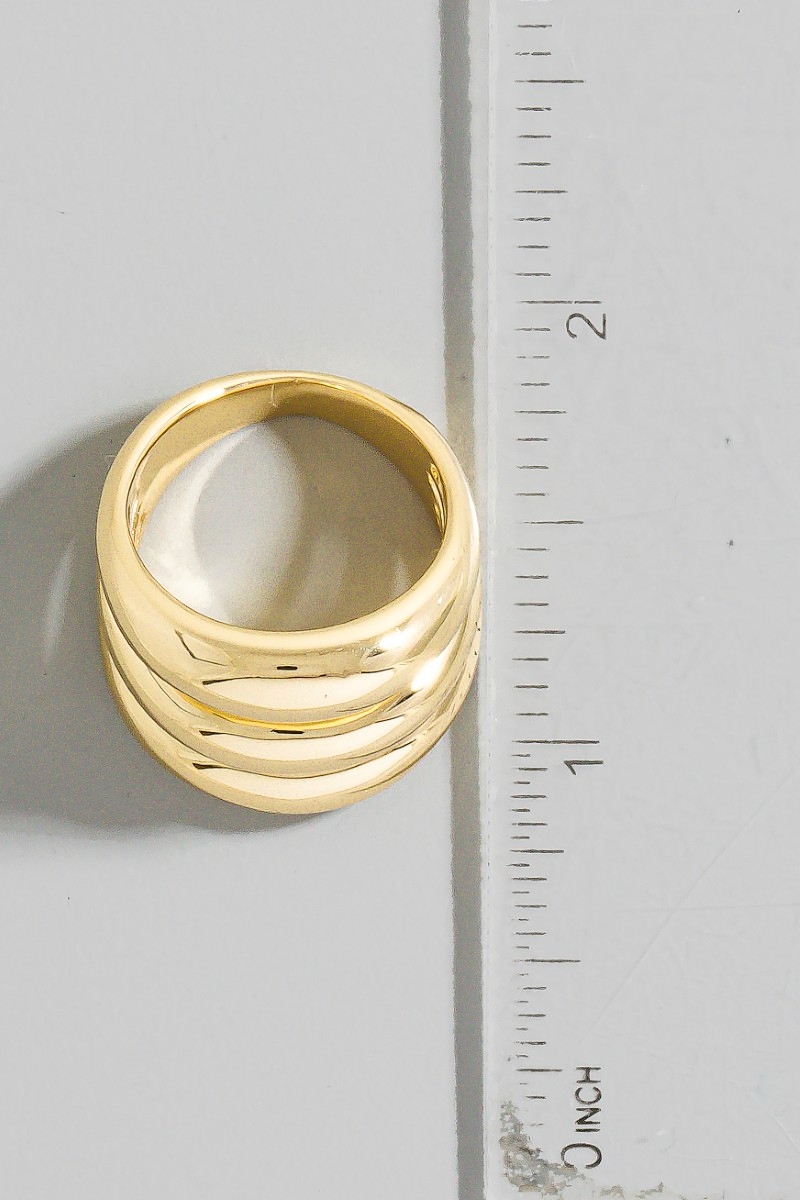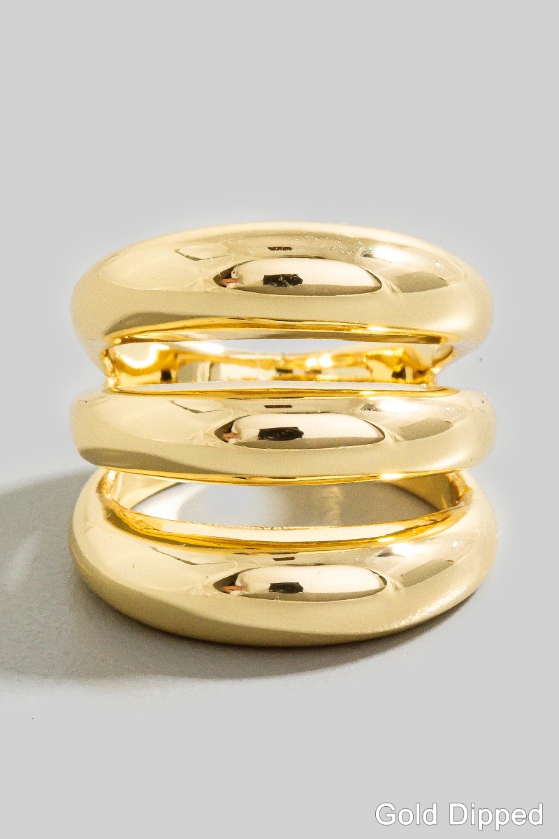 • This ring showcases a unique gold dipped chunky triple layered band style. Savor the craftsmanship that goes beyond the ordinary, as this ring effortlessly captivates attention.