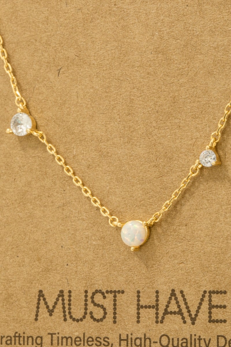 - This trending necklace showcases a timeless gold dipped cubic zirconia stud and gemstone charm necklace style. Discover the perfect balance of functionality and fashion.