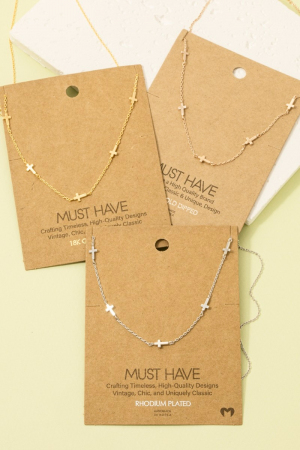 • This trending necklace brings a unique gold dipped dainty cross station necklace style. Immerse yourself in the world of understated glamour as this trending necklace effortlessly exudes timeless appeal.