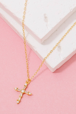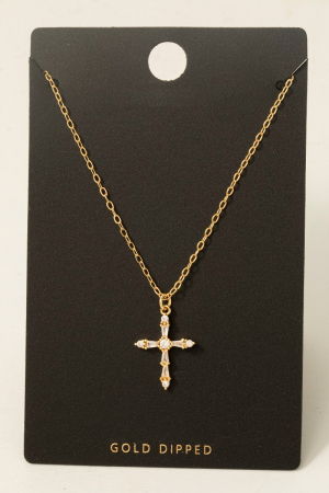 • This necklace brings a unique gold dipped dainty cubic zirconia cross pendant style. Discover the perfect balance of subtlety and flair as this necklace effortlessly completes your look.