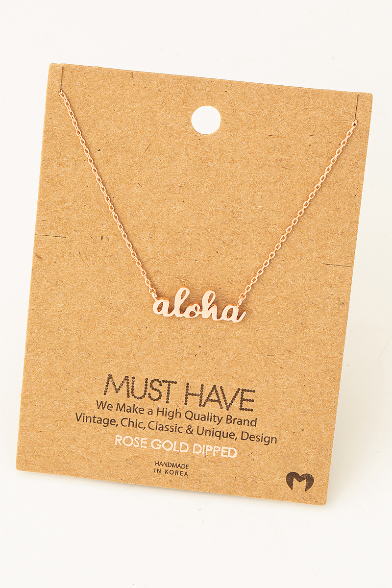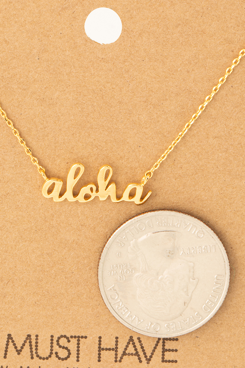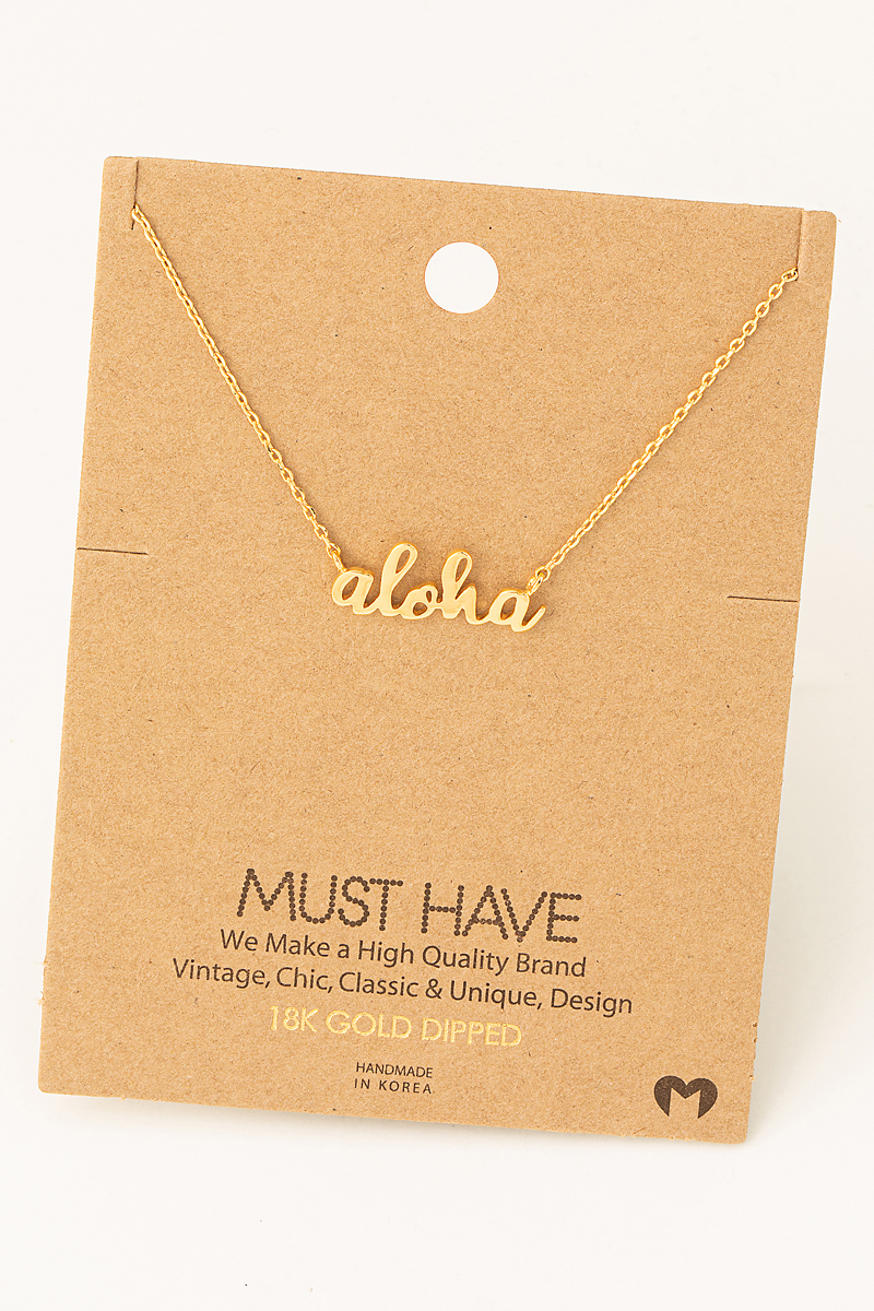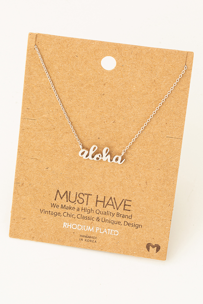 - This necklace showcases a unique handwritten aloha print charm style. Celebrate individual style with this versatile, eye-catching addition.