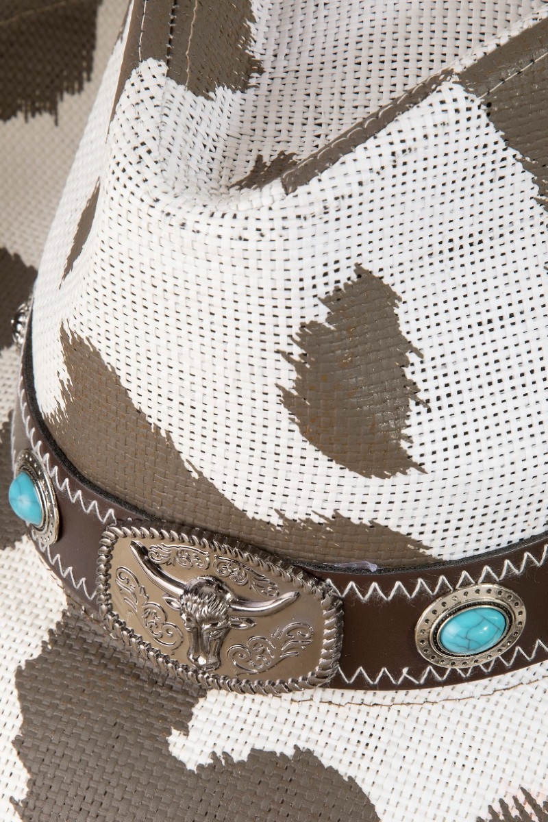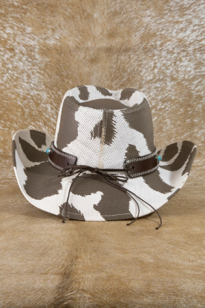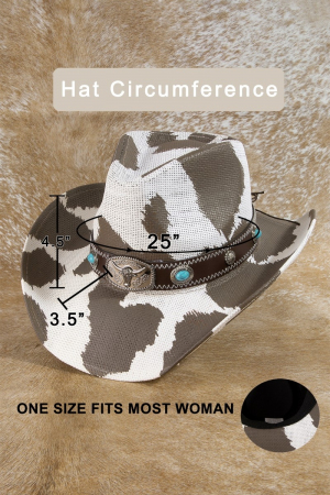 - This cowboy hat showcases a unique western longhorn concho belt cowhide print style. Witness the perfect fusion of style and functionality as this cowboy hat effortlessly complements your lifestyle.