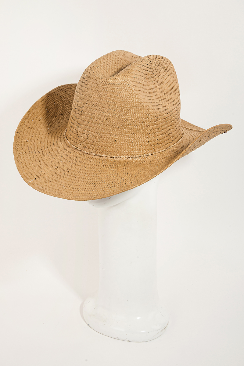 • This cowboy hat features a fashionable western straw braided style. Redefine your look effortlessly with this standout, on-trend piece.